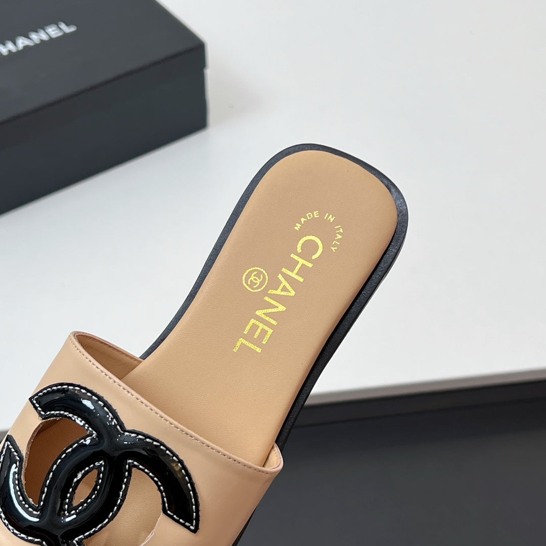 Ciabatte CC in pelle di vitello beige scuro 149746