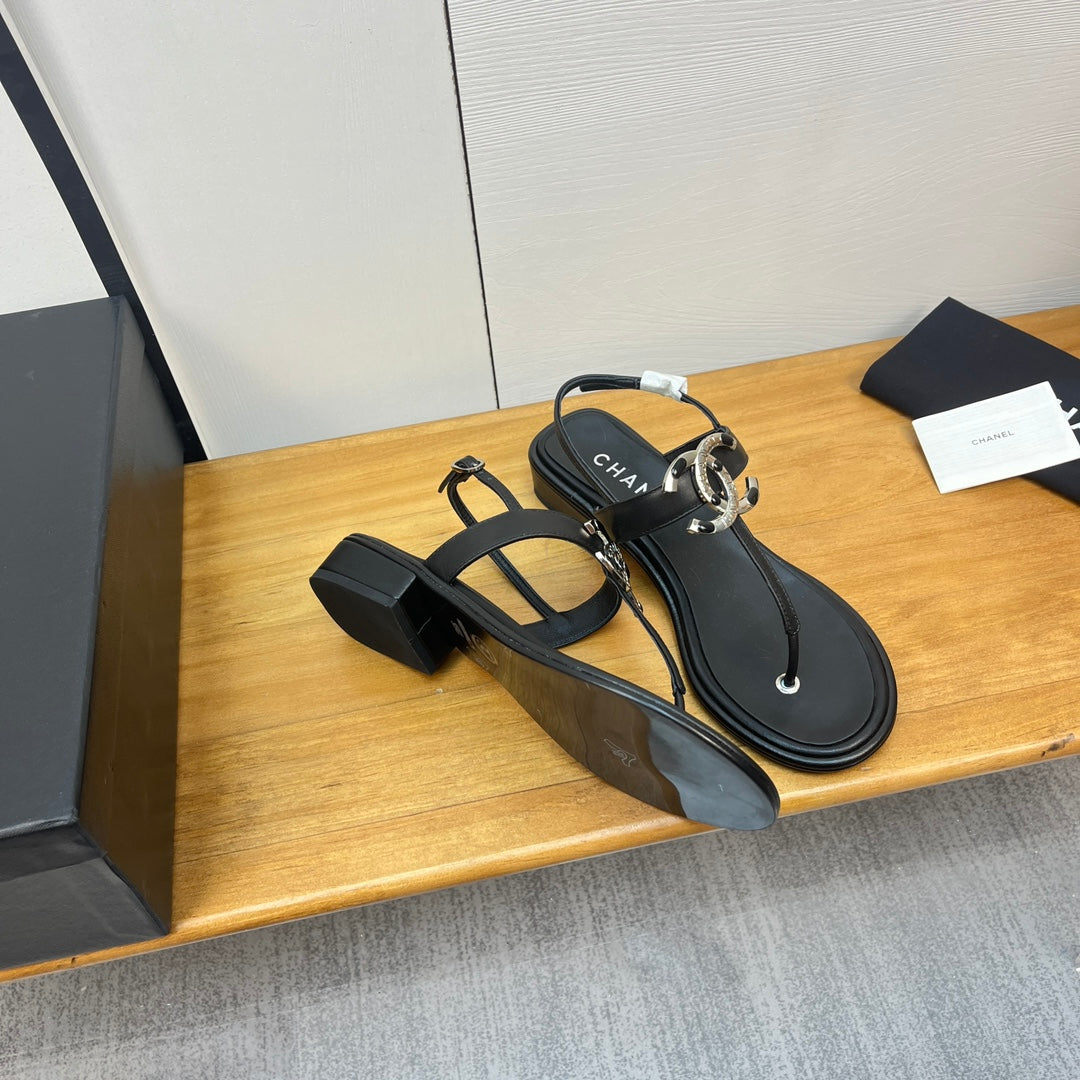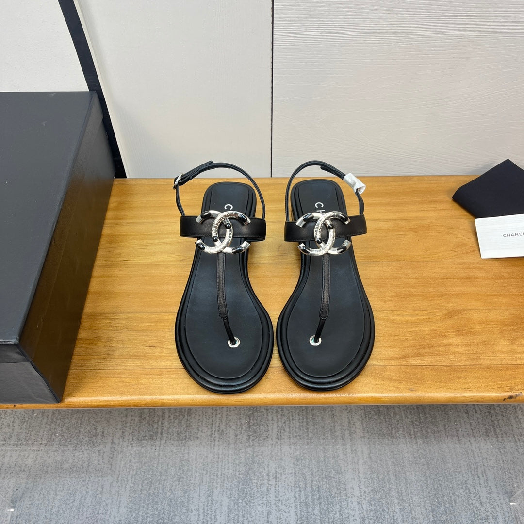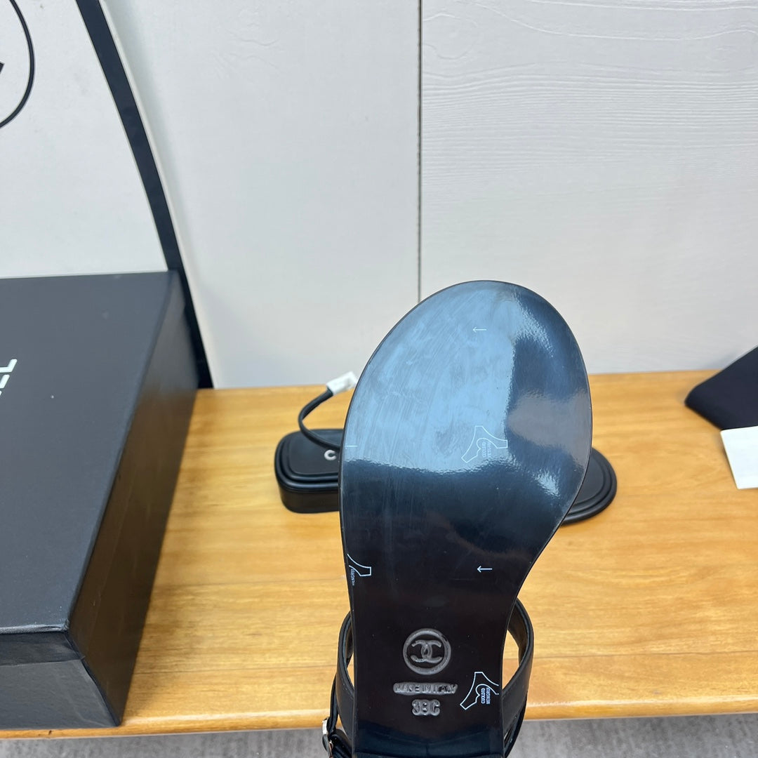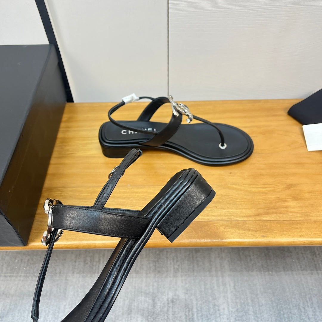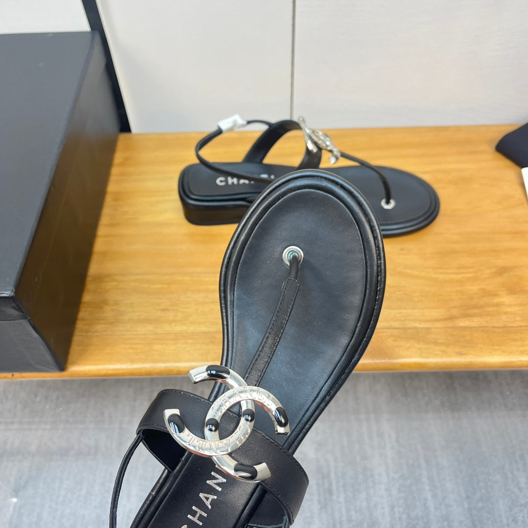 sandalo infradito cc 30mm pelle di vitello nera logo cc argento