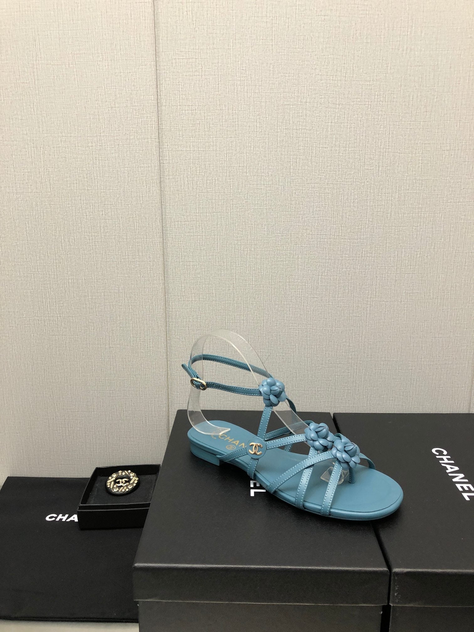 SANDALO BASSO FLOREALE IN PELLE DI AGNELLO BLU ZAFFIRO
