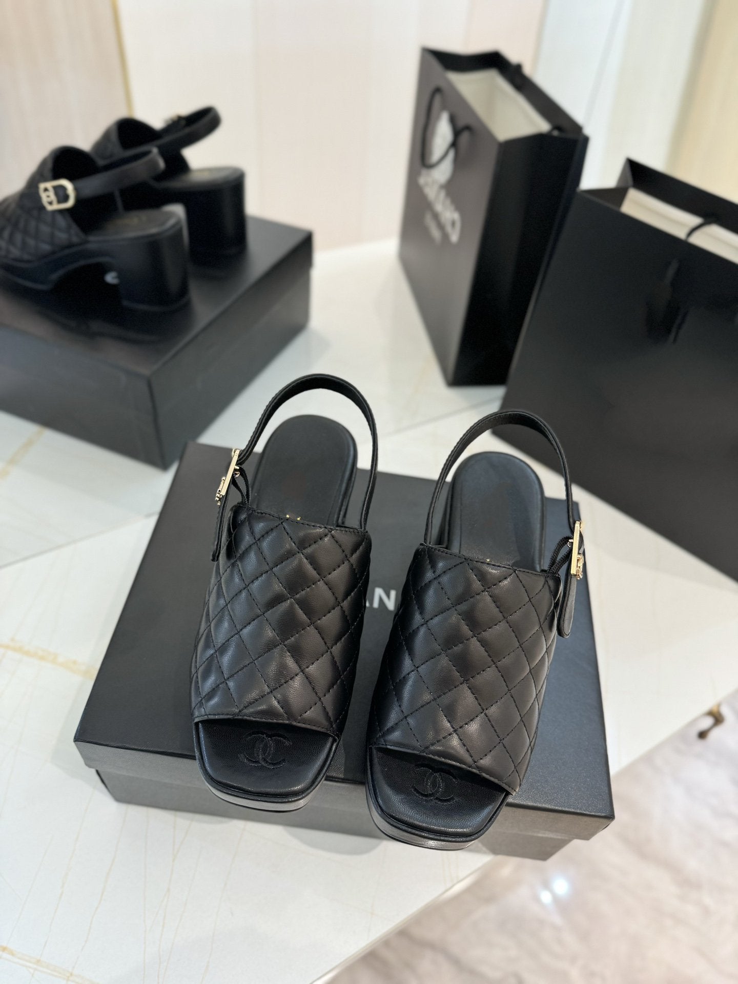 sandalo tacco alto 100 slingback in pelle di vitello trapuntata nera