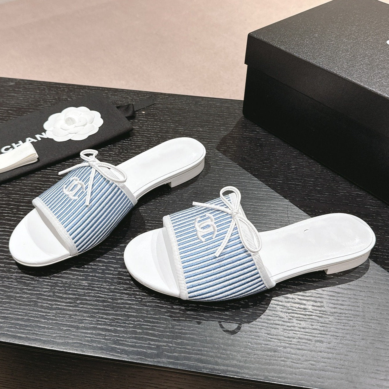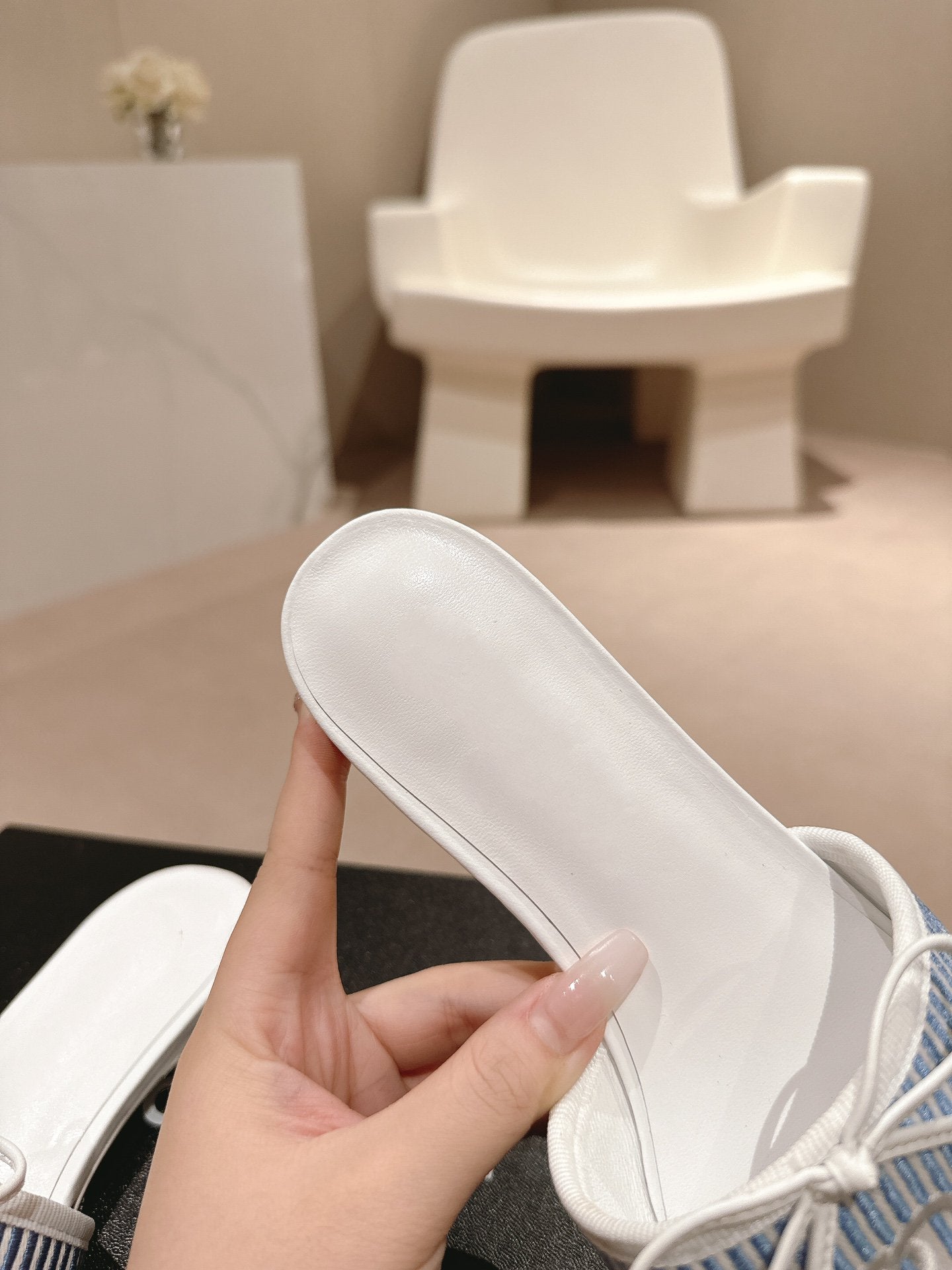 sandalo mulo in tela blu bianca a righe in pelle di vitello