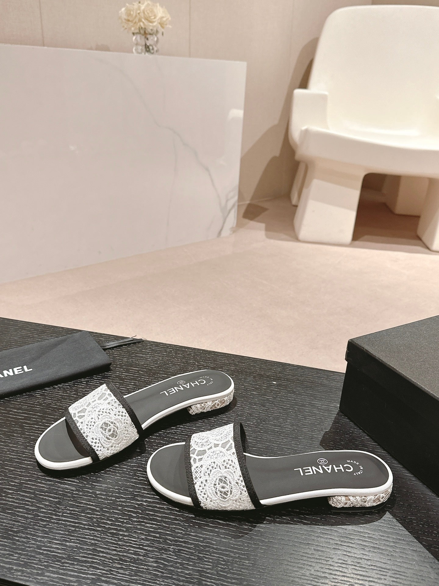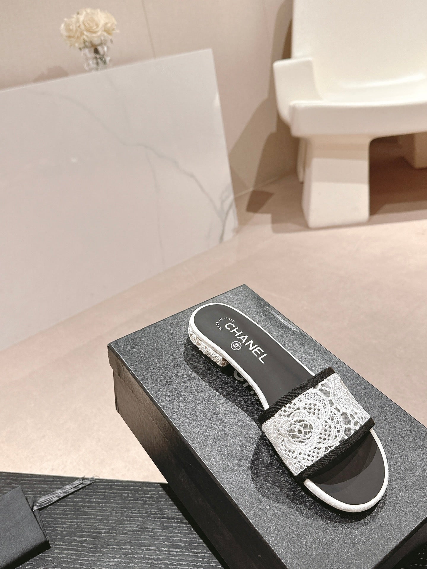 sandalo mulo in pizzo bianco