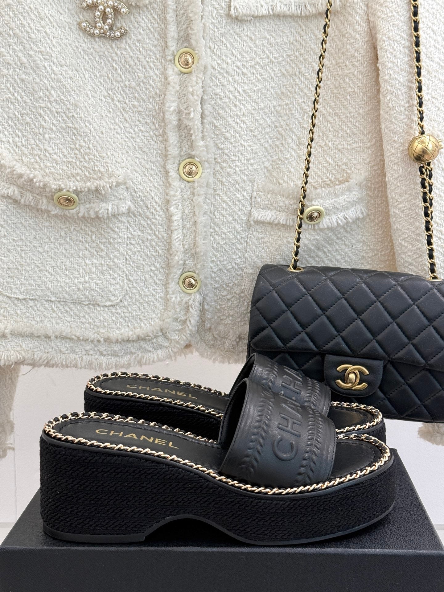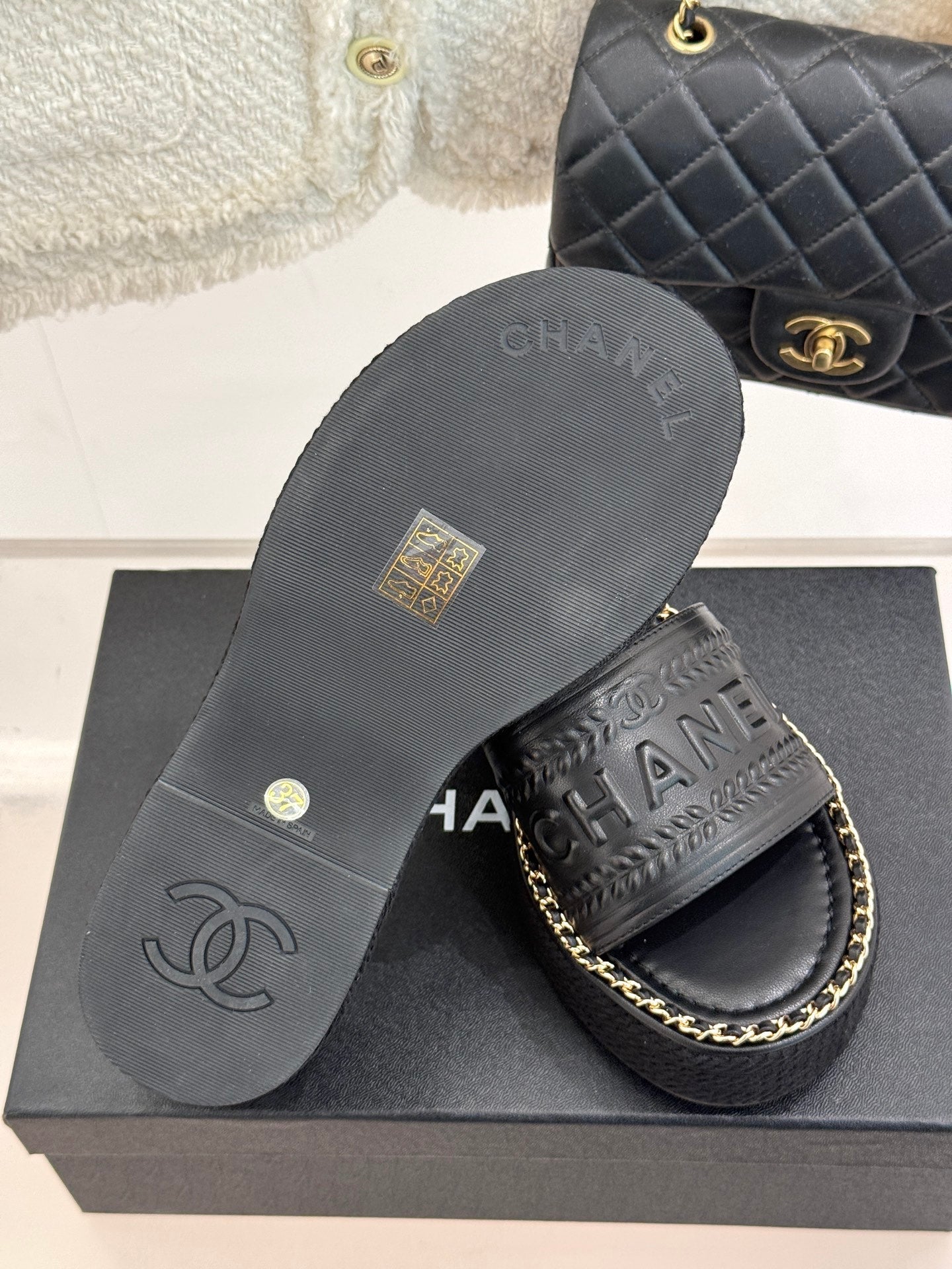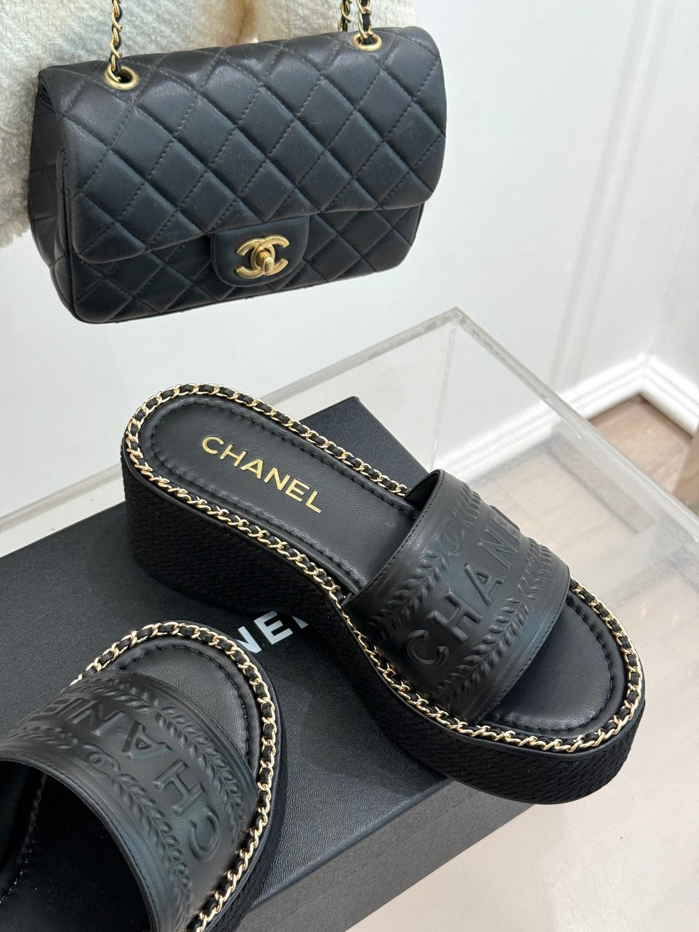 PANTOFOLE CON ZEPPA E SUOLA SPESSA IN PELLE DI VITELLO NERA
