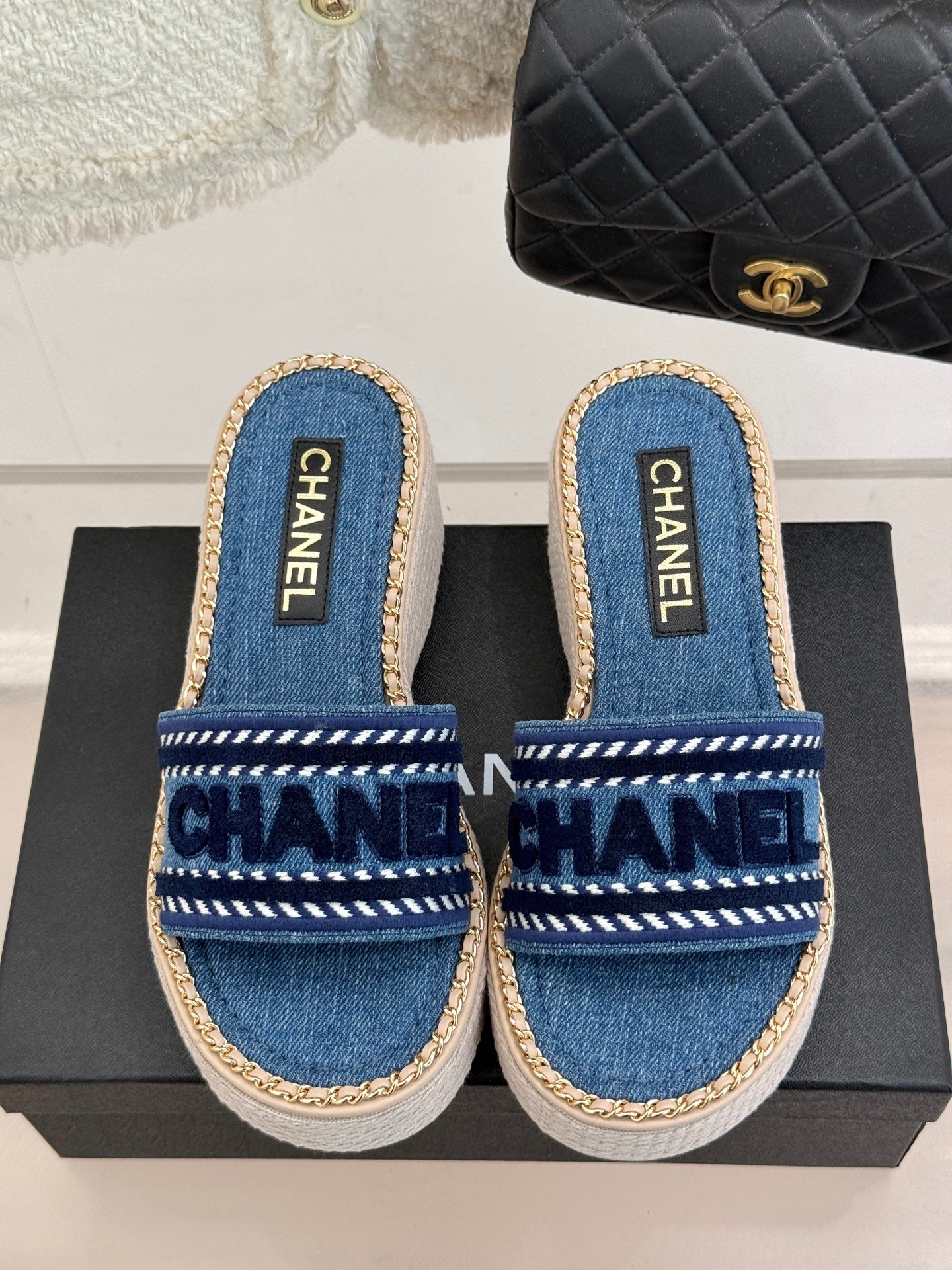 CIABATTE CON ZEPPA E SUOLA SPESSA IN TESSUTO DENIM BLU CLASSICO