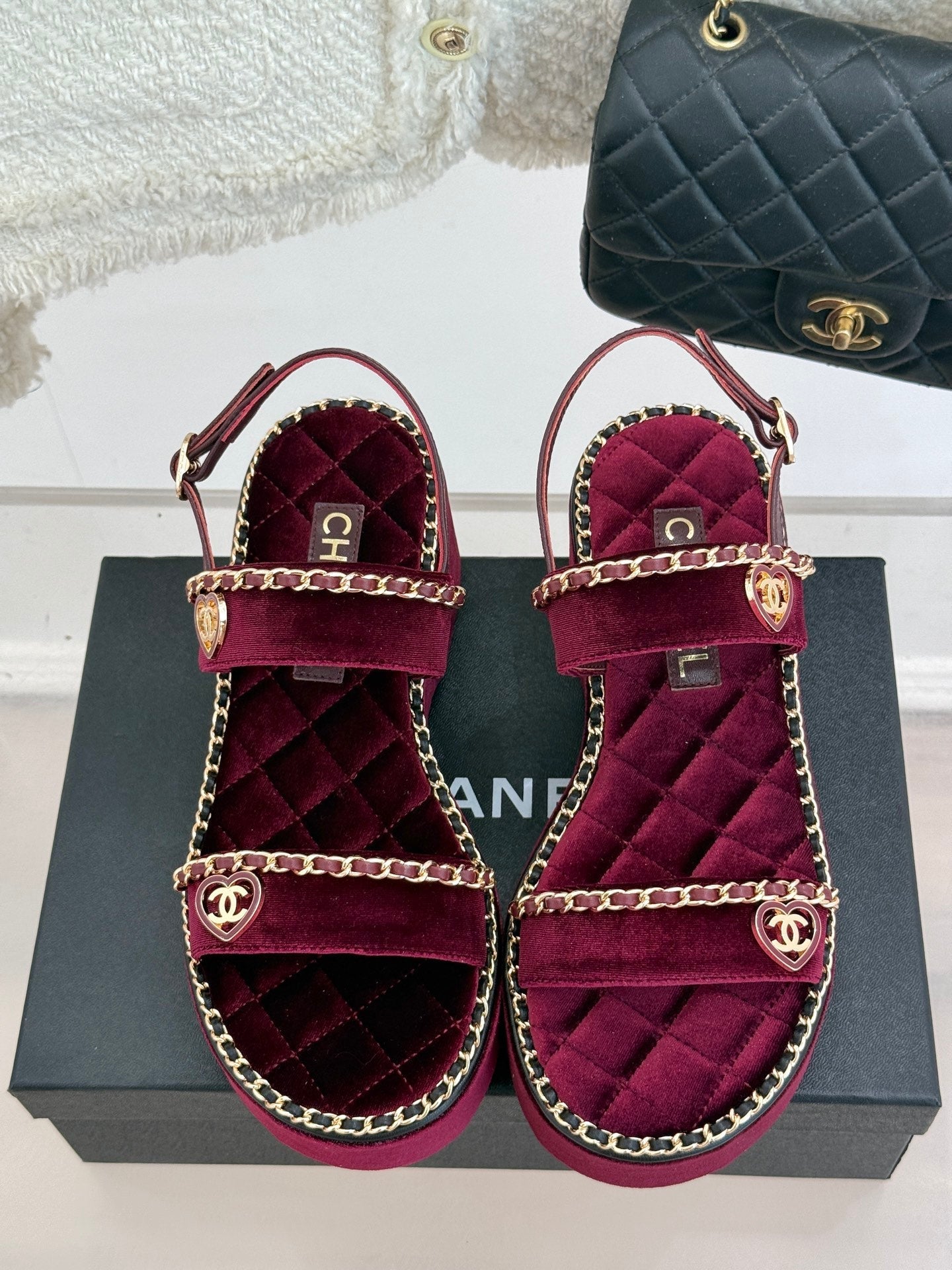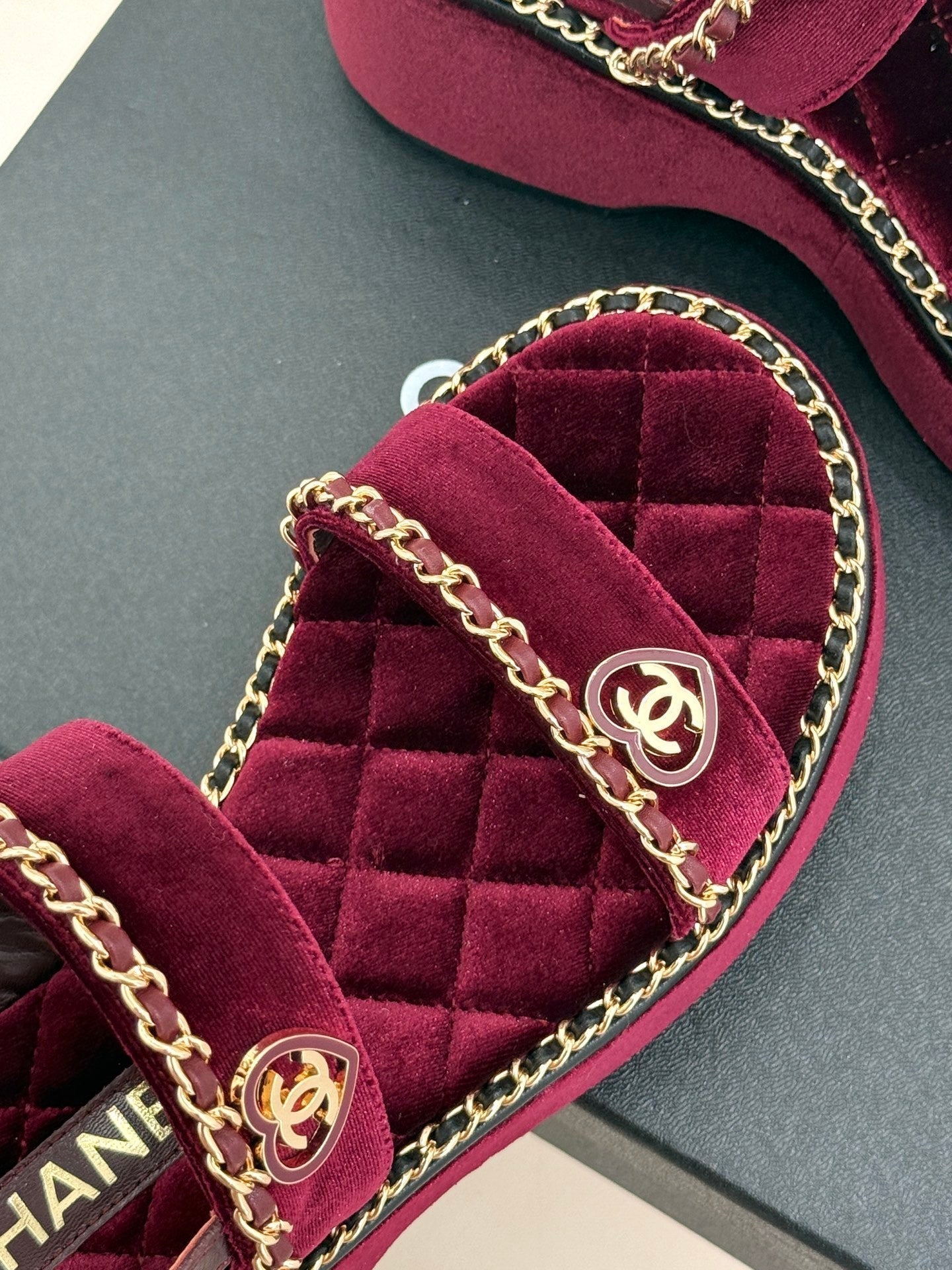SANDALO CON CUORE A CATENA E SUOLA SPESSA IN VELLUTO VIOLA PRUGNA