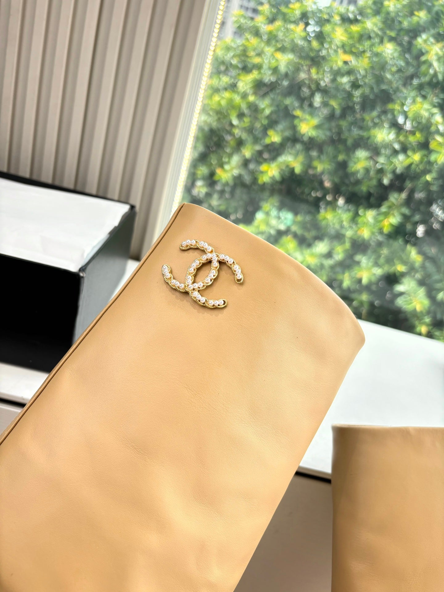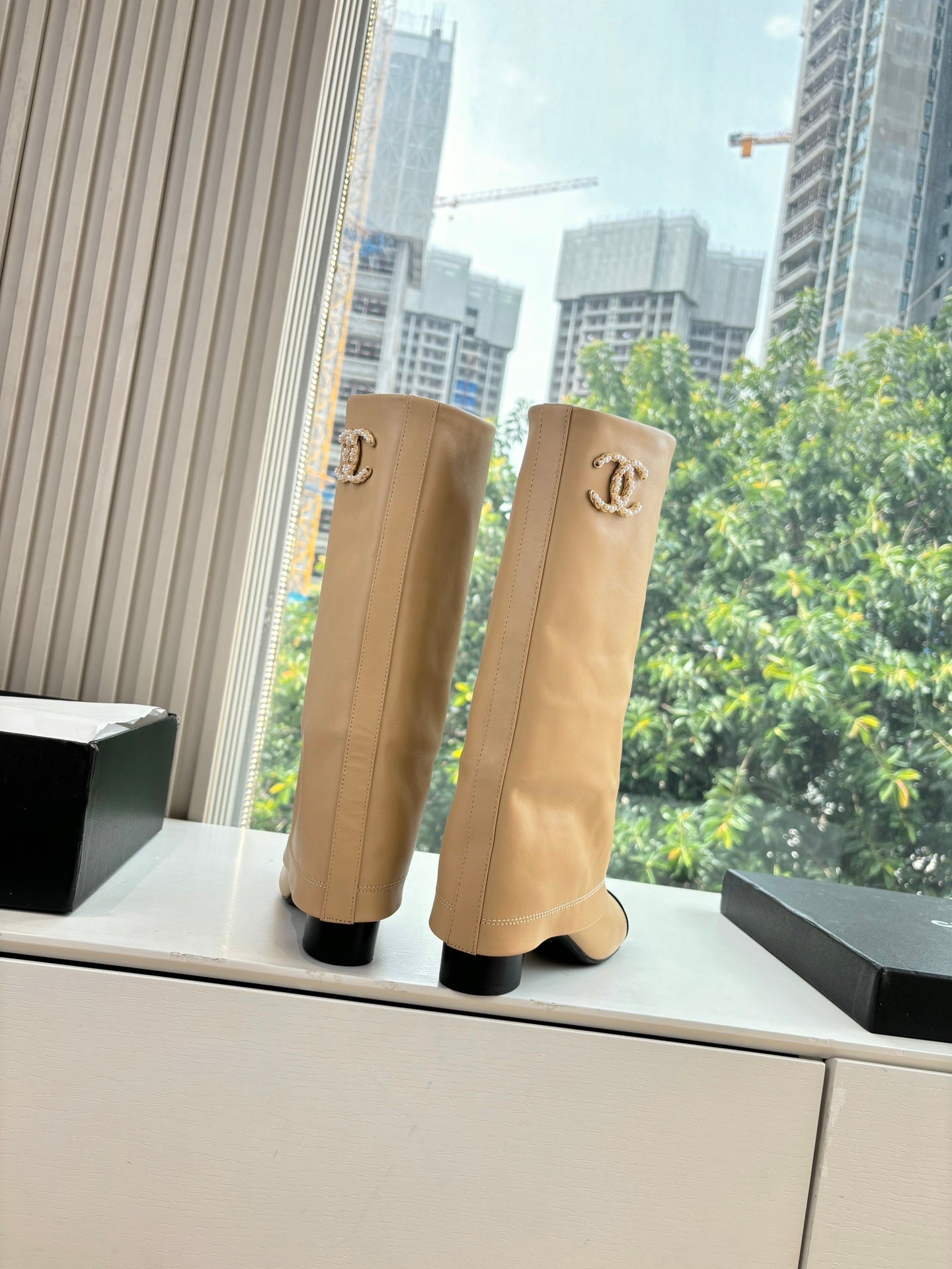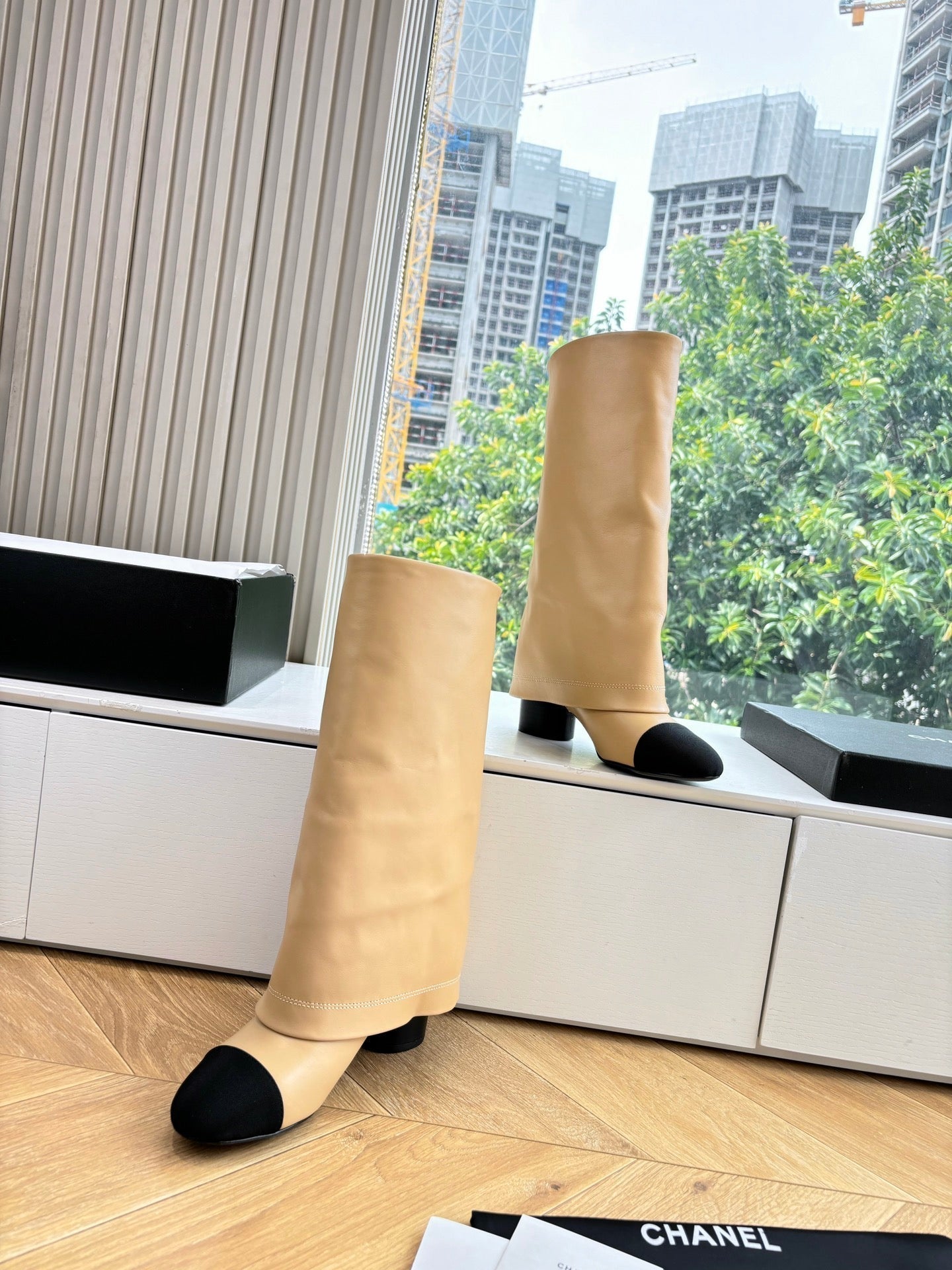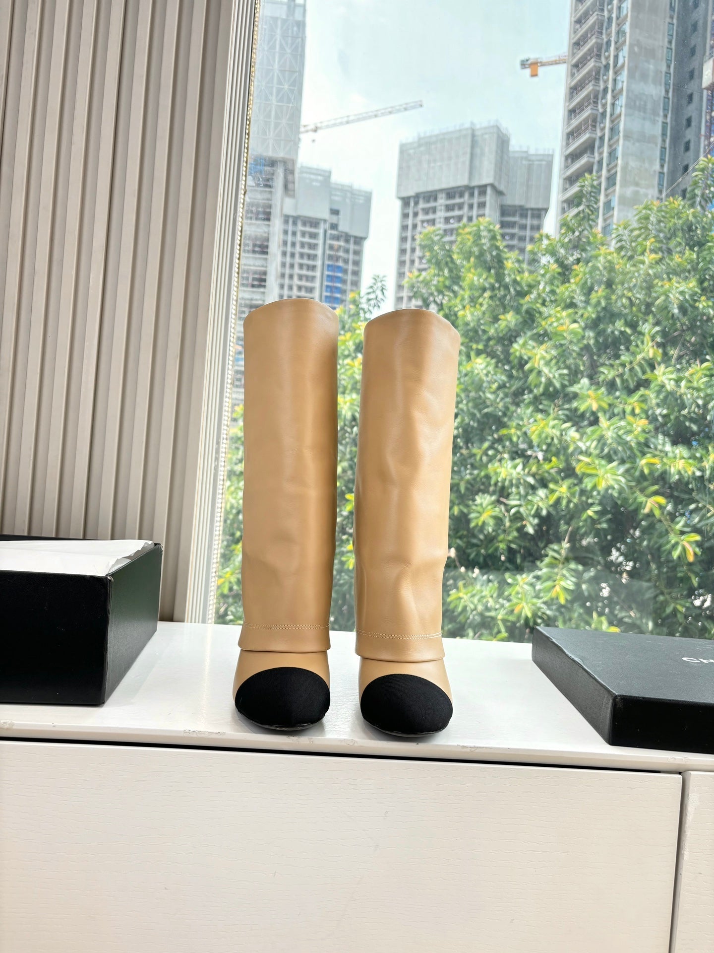 CC 25 Stivale Alto Beige Pelle di Vitello Grosgrain Nero 430337