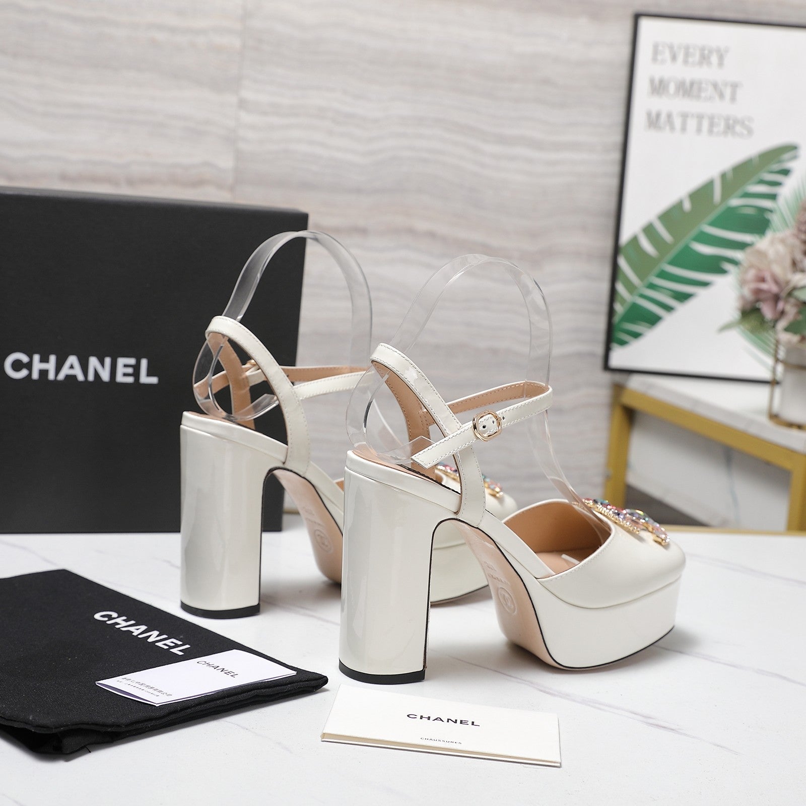 Sandali con fibbia e pietre multicolori CC 25s 110 mm in pelle verniciata bianca e pelle di pecora 425825