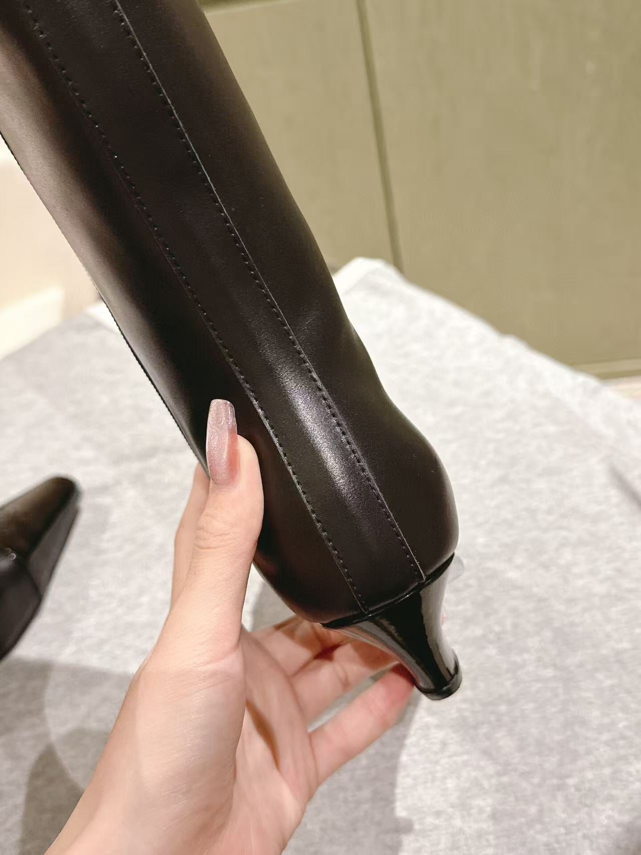 Stivali alti fino al ginocchio con punta affilata e tacco spesso in pelle di pecora nera da 50 mm