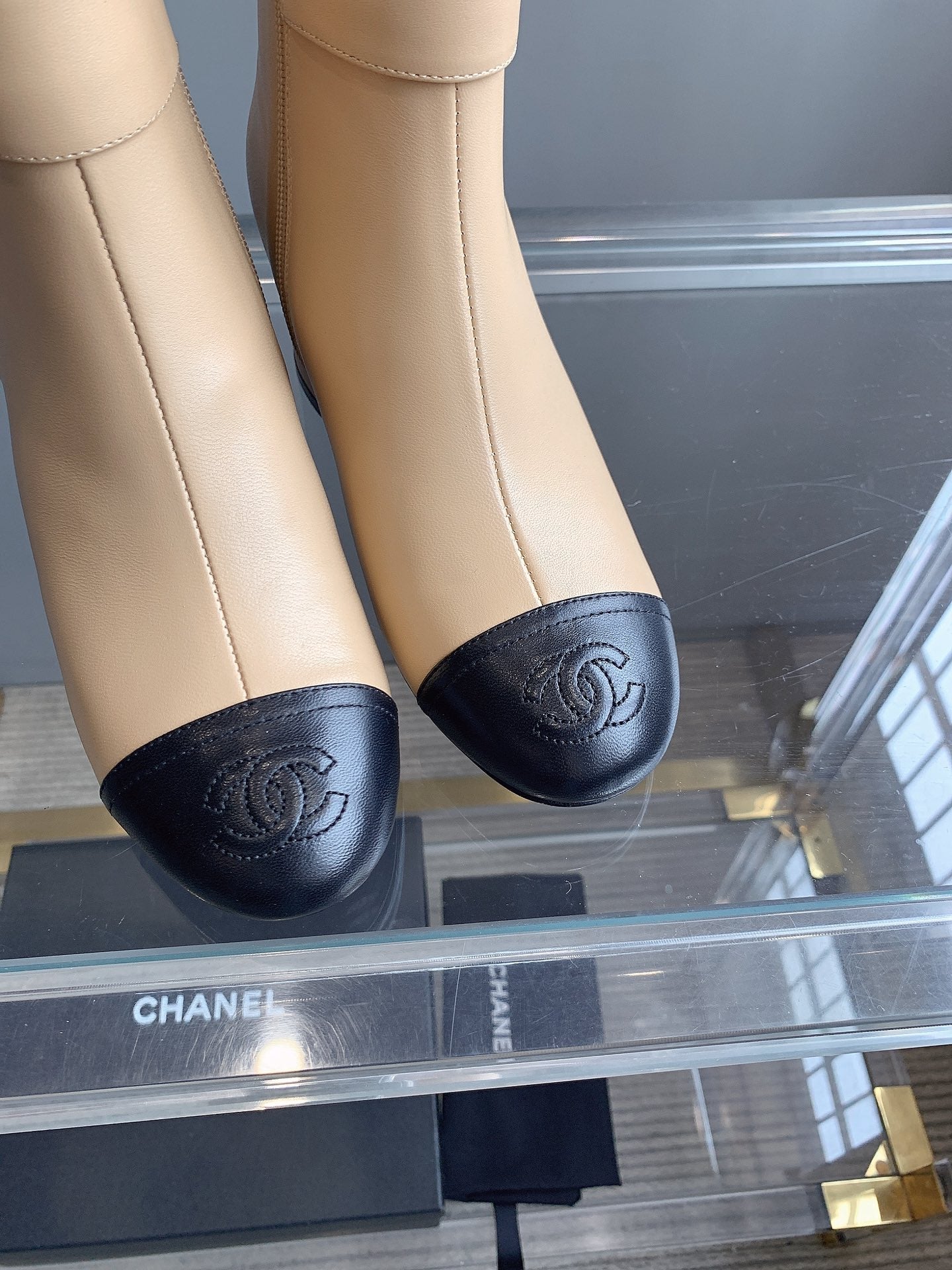Stivaletti con punta quadrata CC 70mm Beige Nero Pelle di vacchetta 464565
