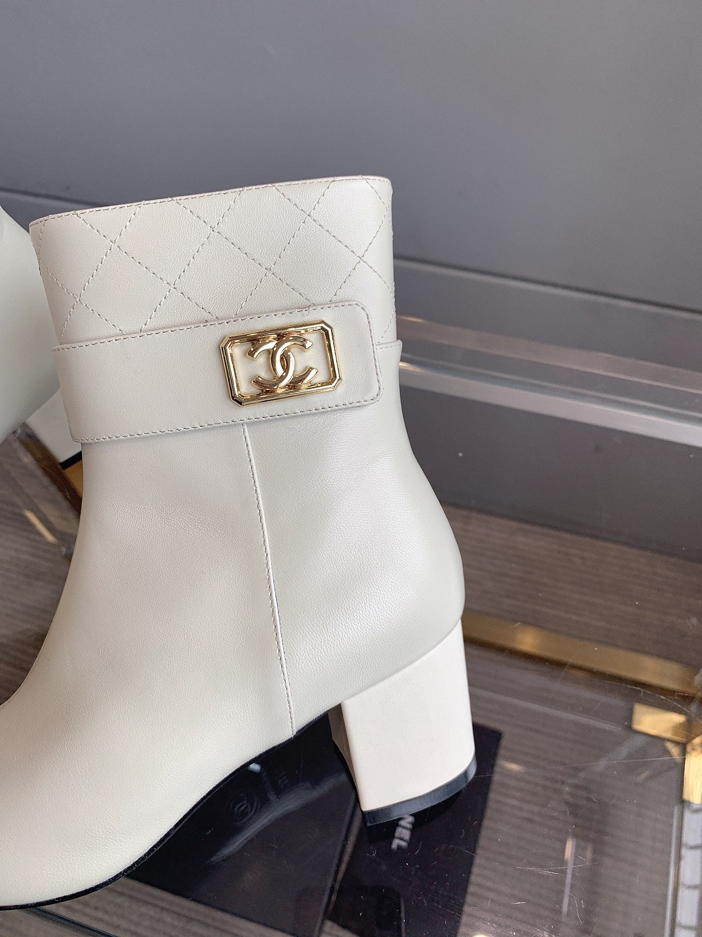 Stivaletti con punta quadrata CC 70mm Bianco Nero Pelle bovina 464566
