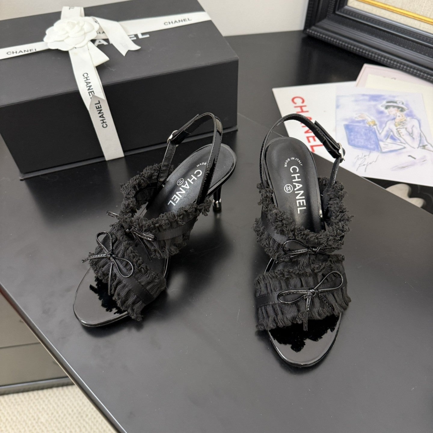 sandalo slingback cc25 ̣fiocco 90mm tela grosgrain nera 233596