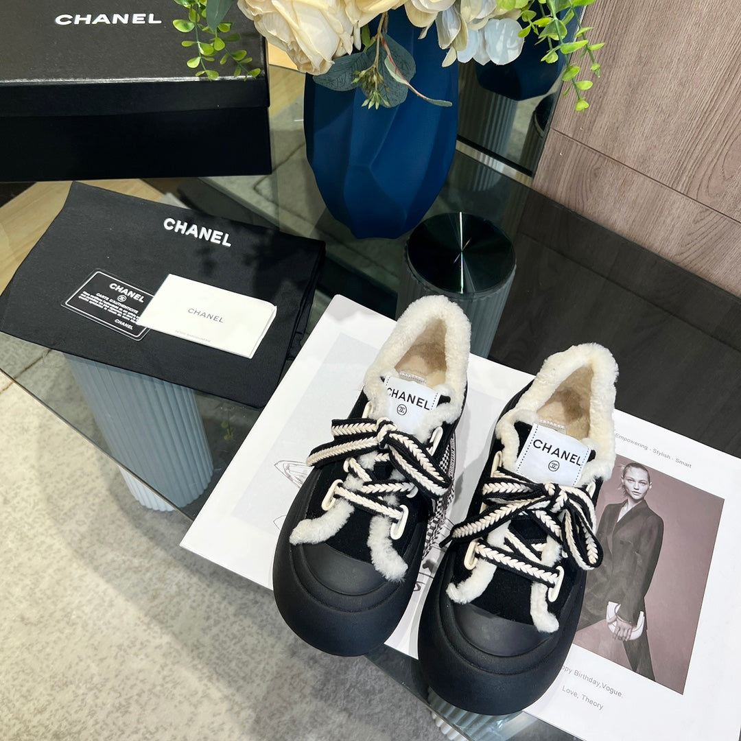 Sneaker CC con suola spessa, fodera in lana scamosciata nera e pile