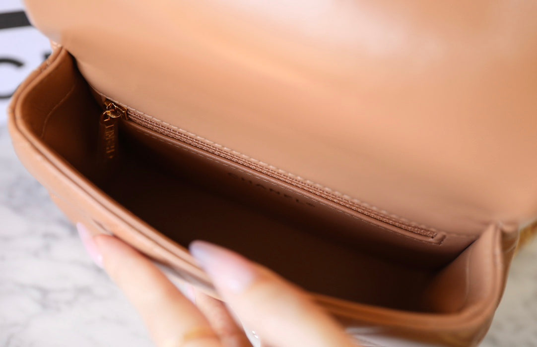 Borsa mini con patta 24b, manico superiore da 19 cm, pelle di agnello beige
