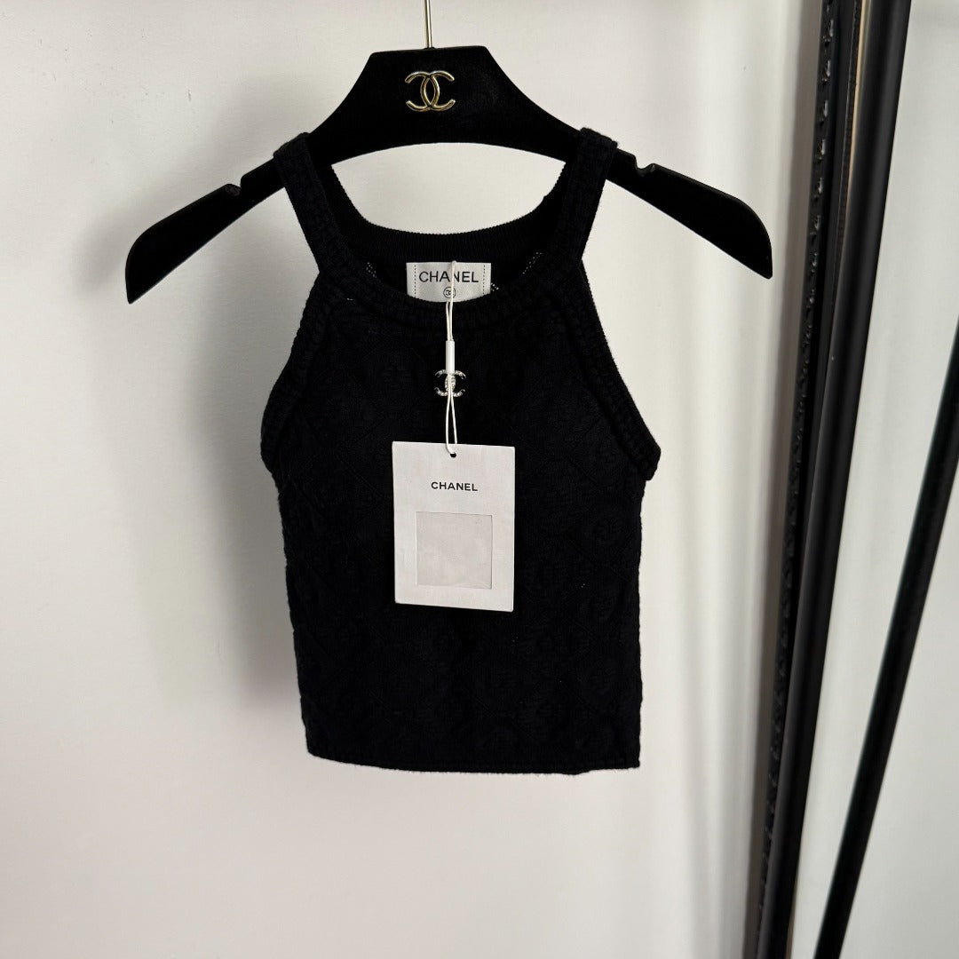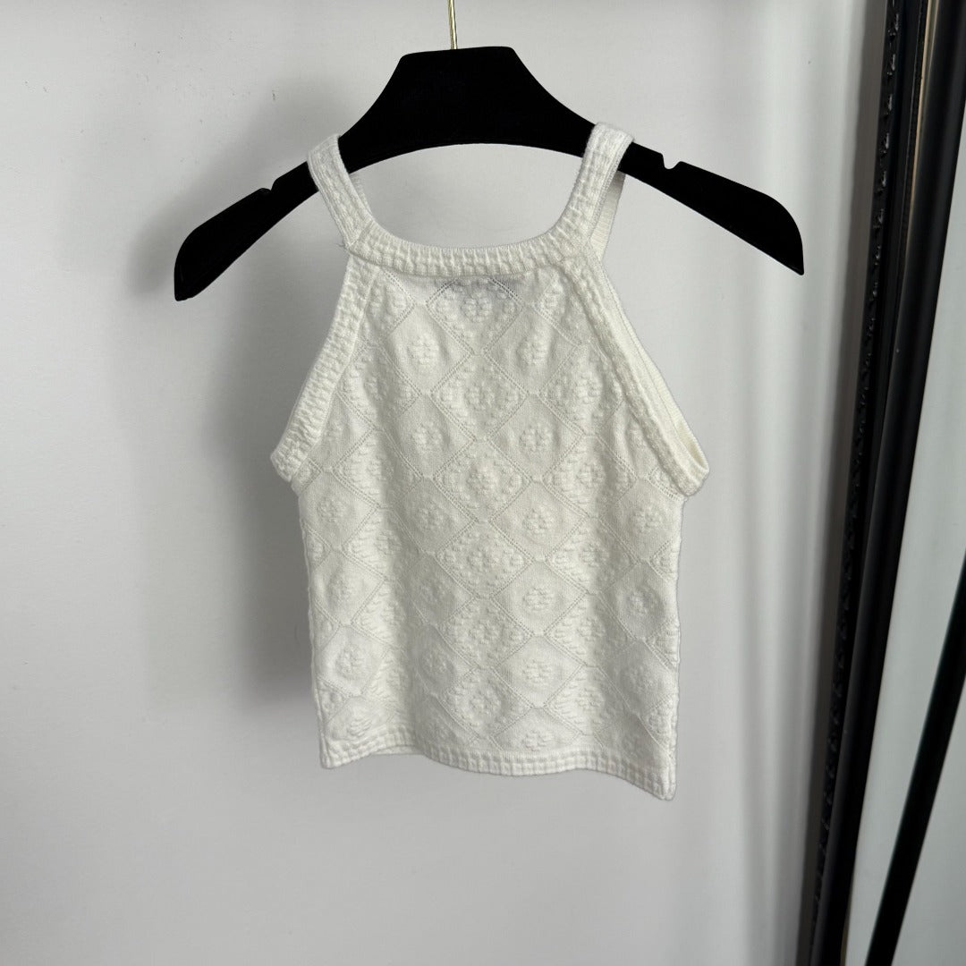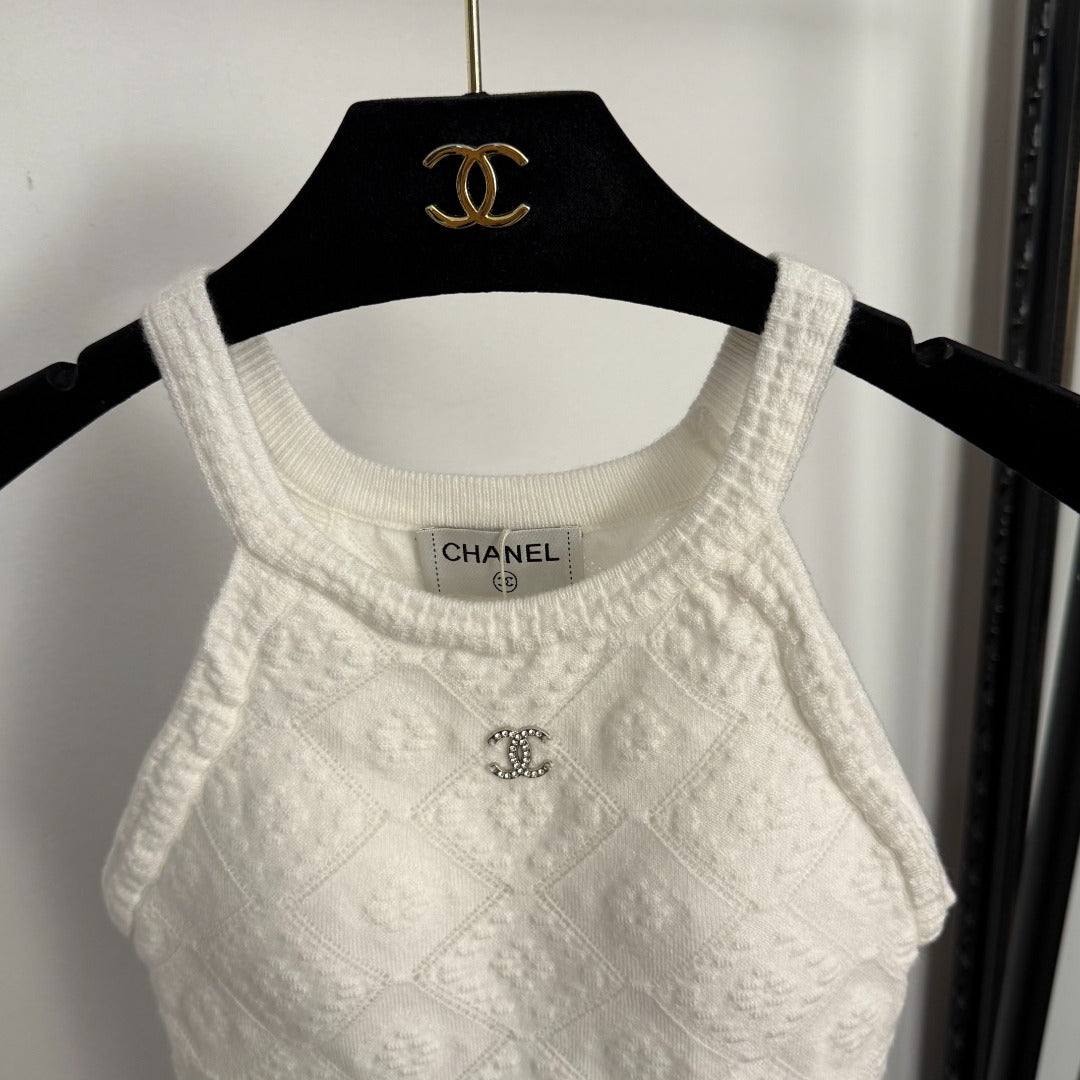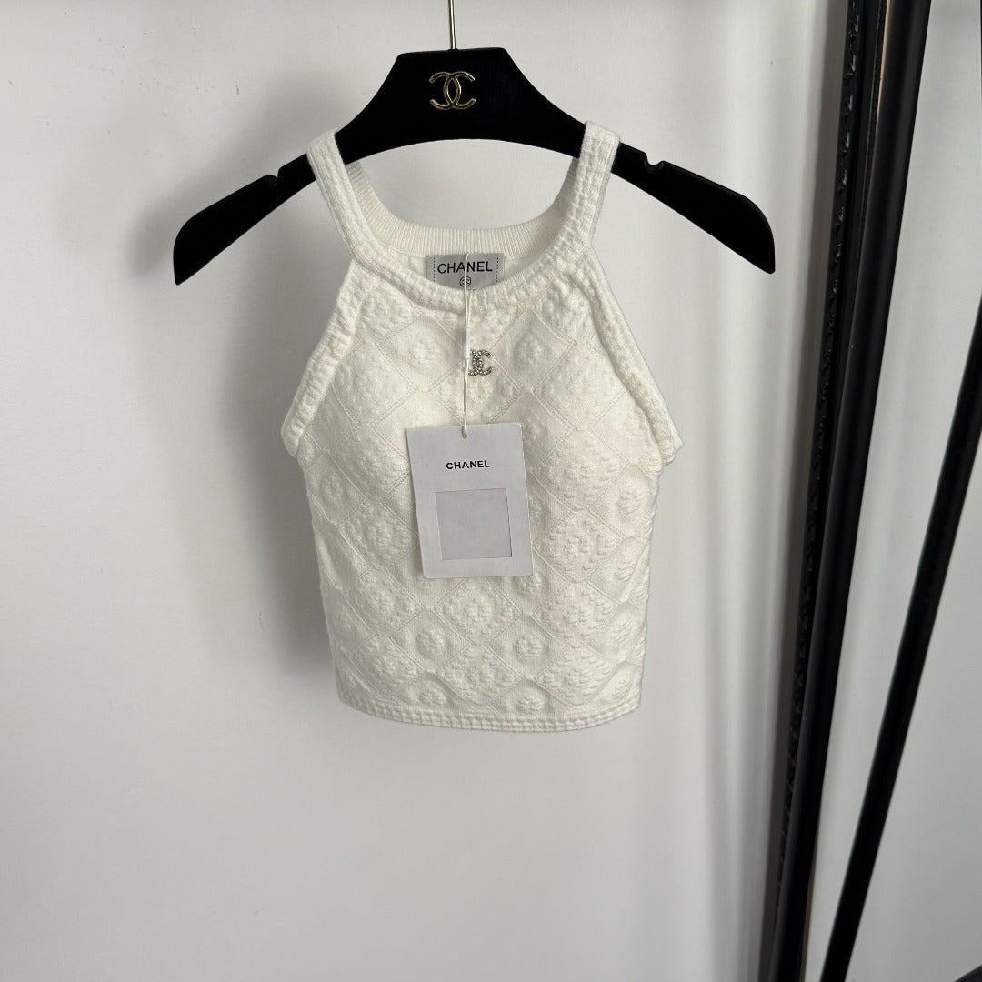CC Diamond Logo Embellished Off-the-Shoulder Knit Camisole