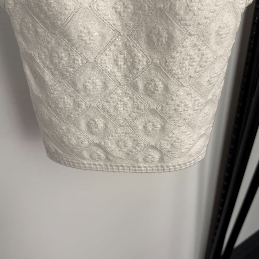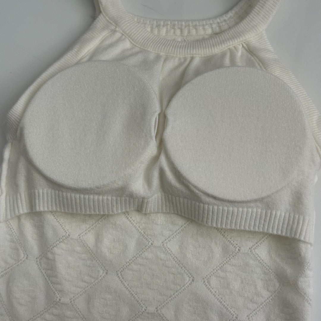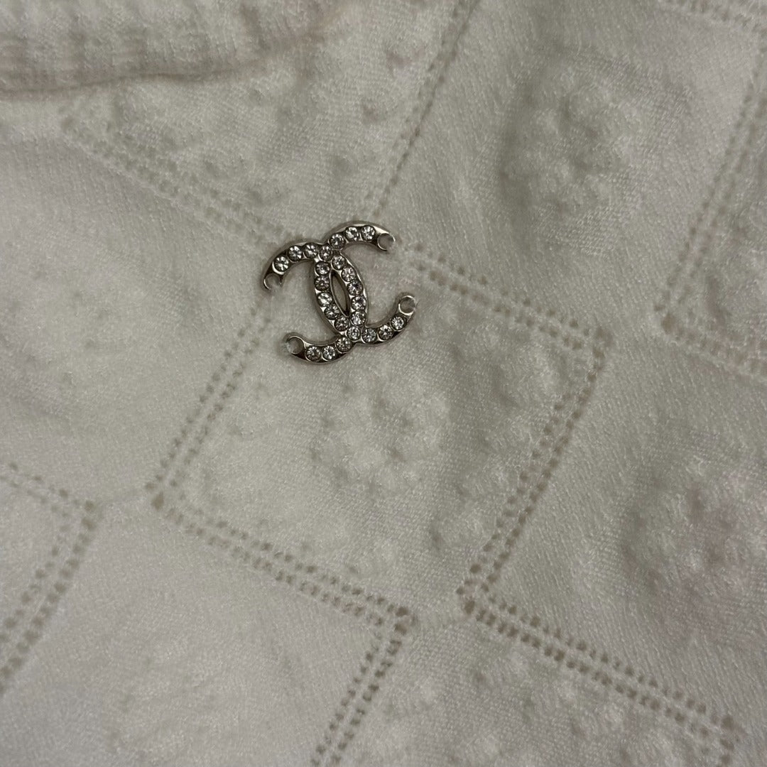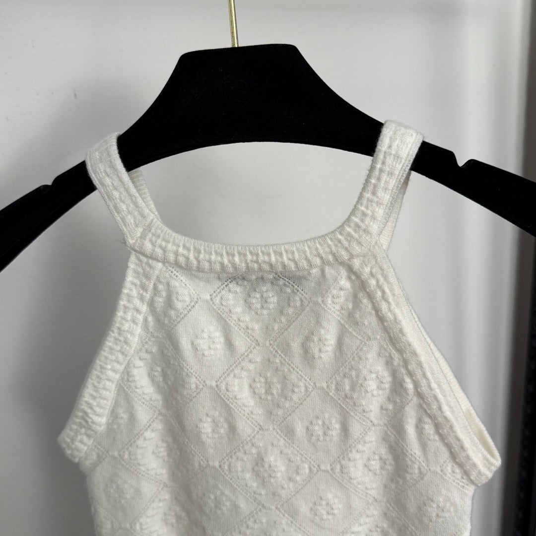 CC Diamond Logo Embellished Off-the-Shoulder Knit Camisole