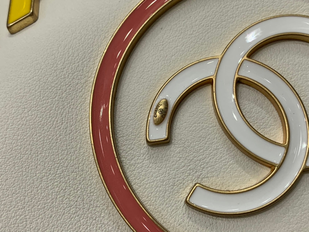 BORSA CC DEAUVILLE TOTE 39CM IN PELLE DI VITELLO BIANCA CON LOGO MULTICOLORE