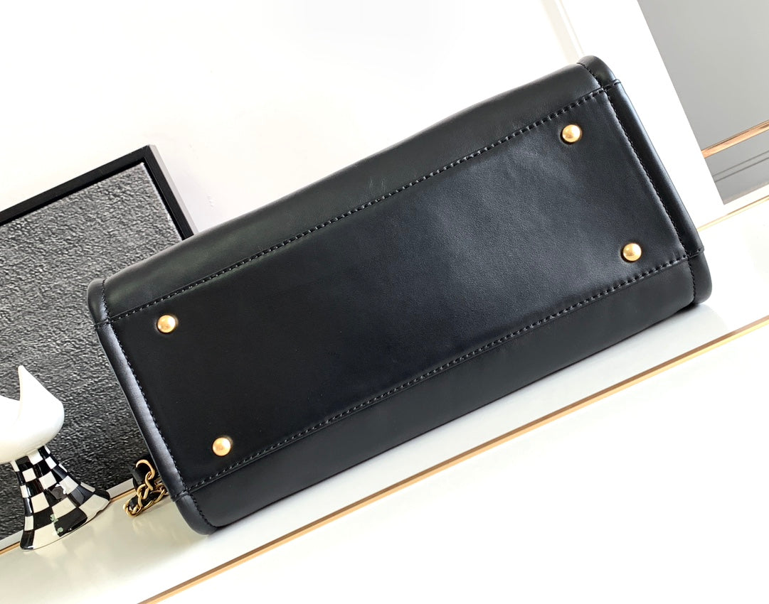 BORSA CC MEDIA DEAUVILLE 33CM IN PELLE DI VITELLO NERA GHW