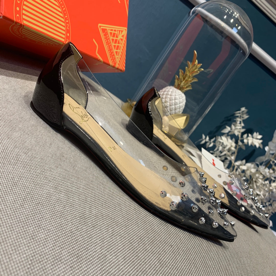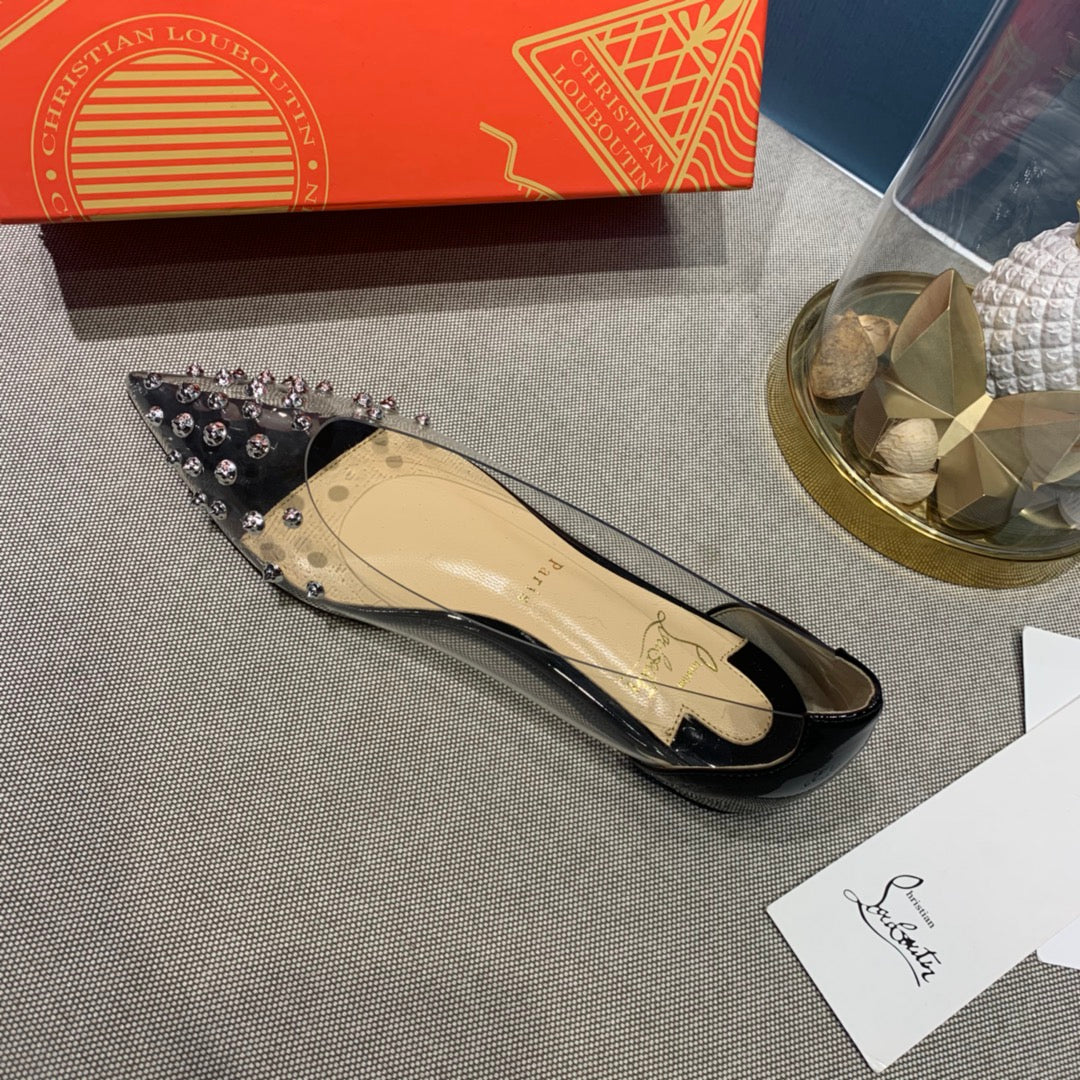 CL Collaclou Spike Clear Flat Decorato in PVC e Pelle Verniciata Nera