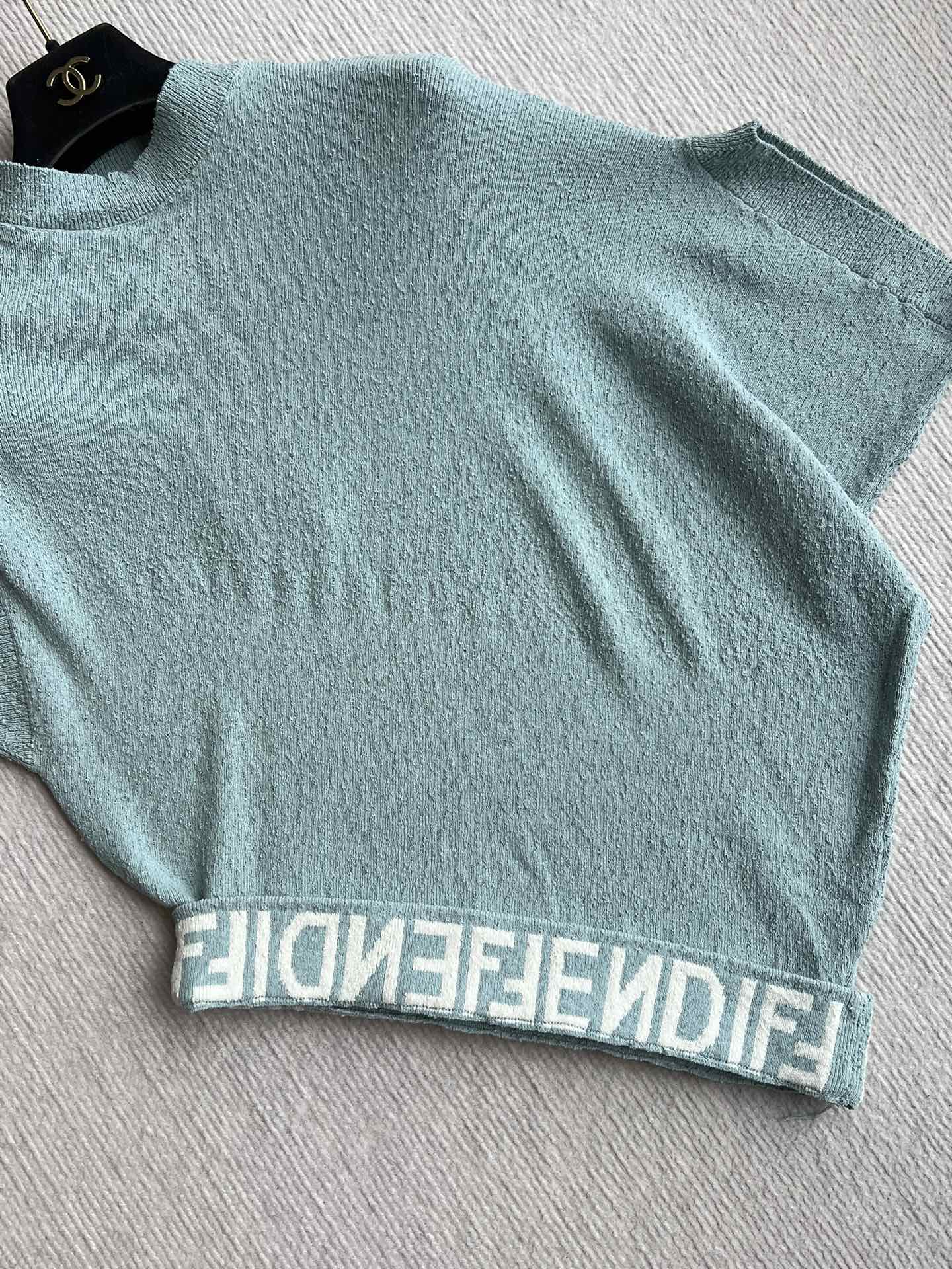 Maglione girocollo con maniche a mantella e orlo asimmetrico Fendi 25 in viscosa blu ghiaccio