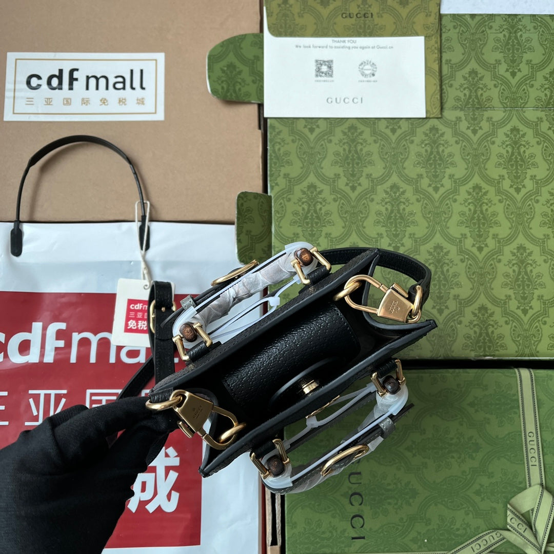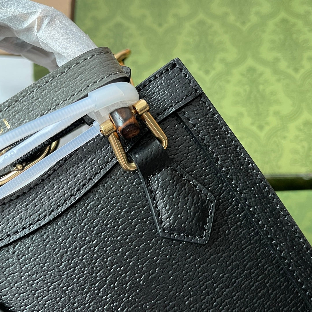 Gucci Diana Bamboo Mini Tote Bag in pelle di agnello nera 240108