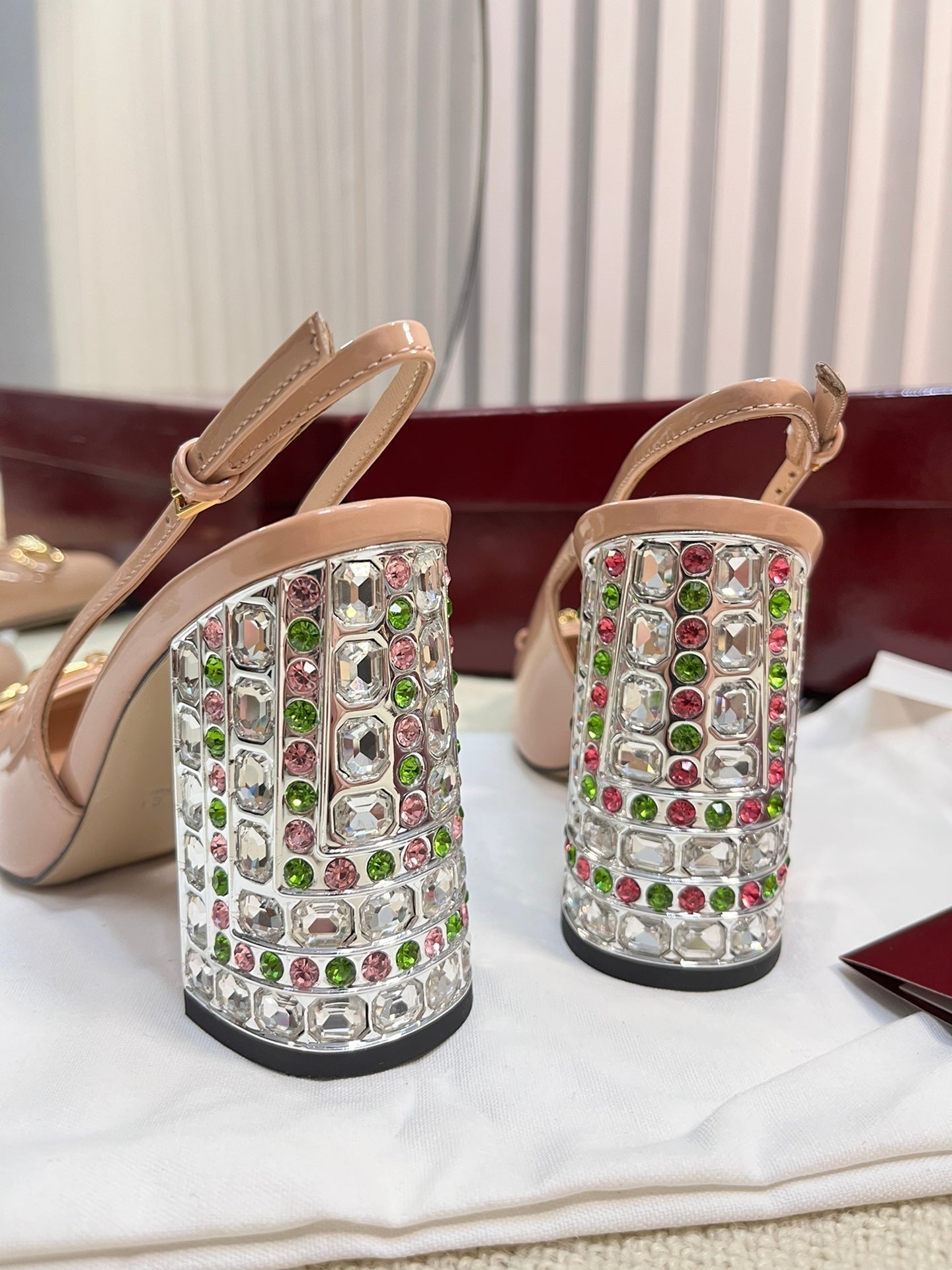 GC Horsebit Slingback con cristallo 95mm Pelle verniciata beige rosa 294597