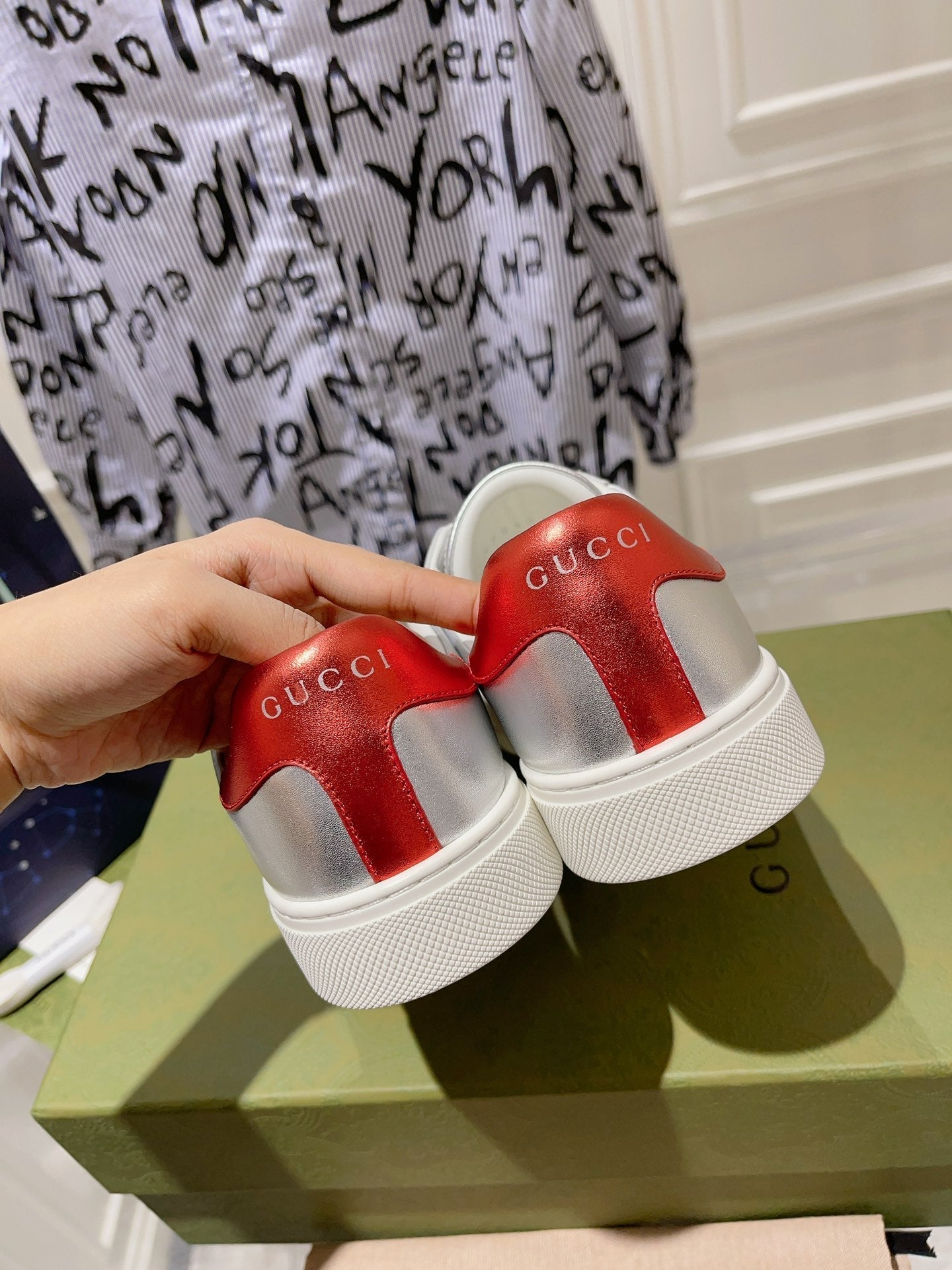GG ACE GG SUPREME TRAINER PELLE DI VITELLO ARGENTO