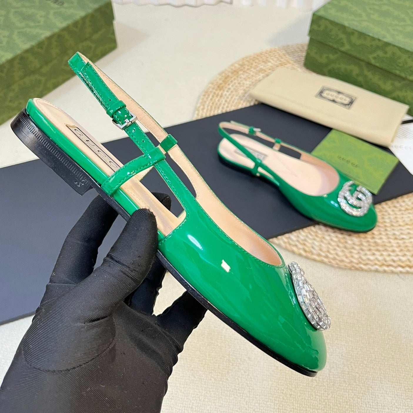 Ballerine slingback in vernice GG Double G Glossy Forest Green
