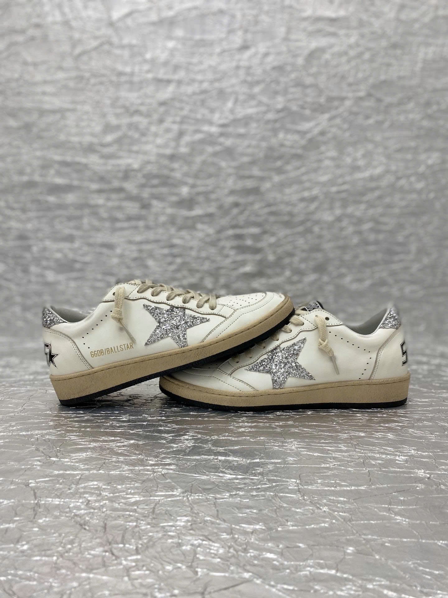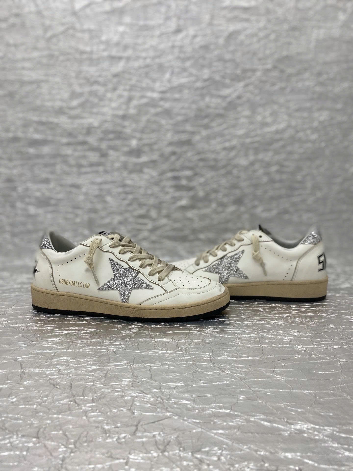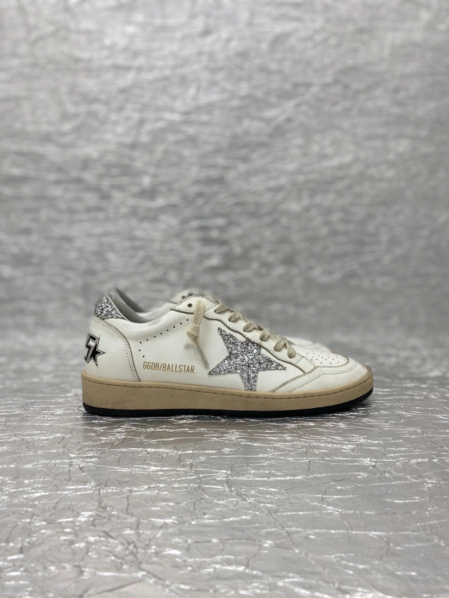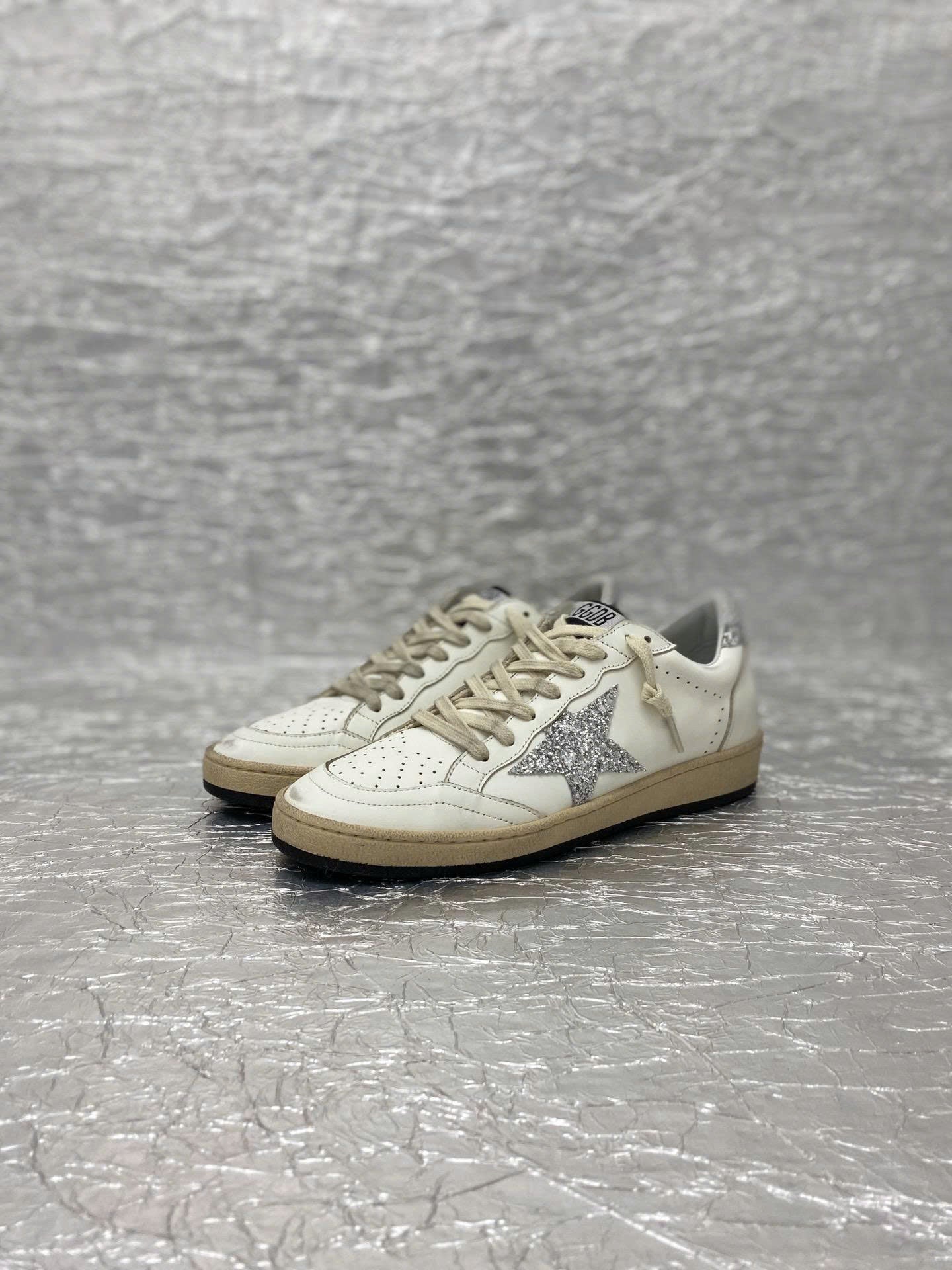 Sneakers GGDB Ball Star in nappa bianca con glitter e stella