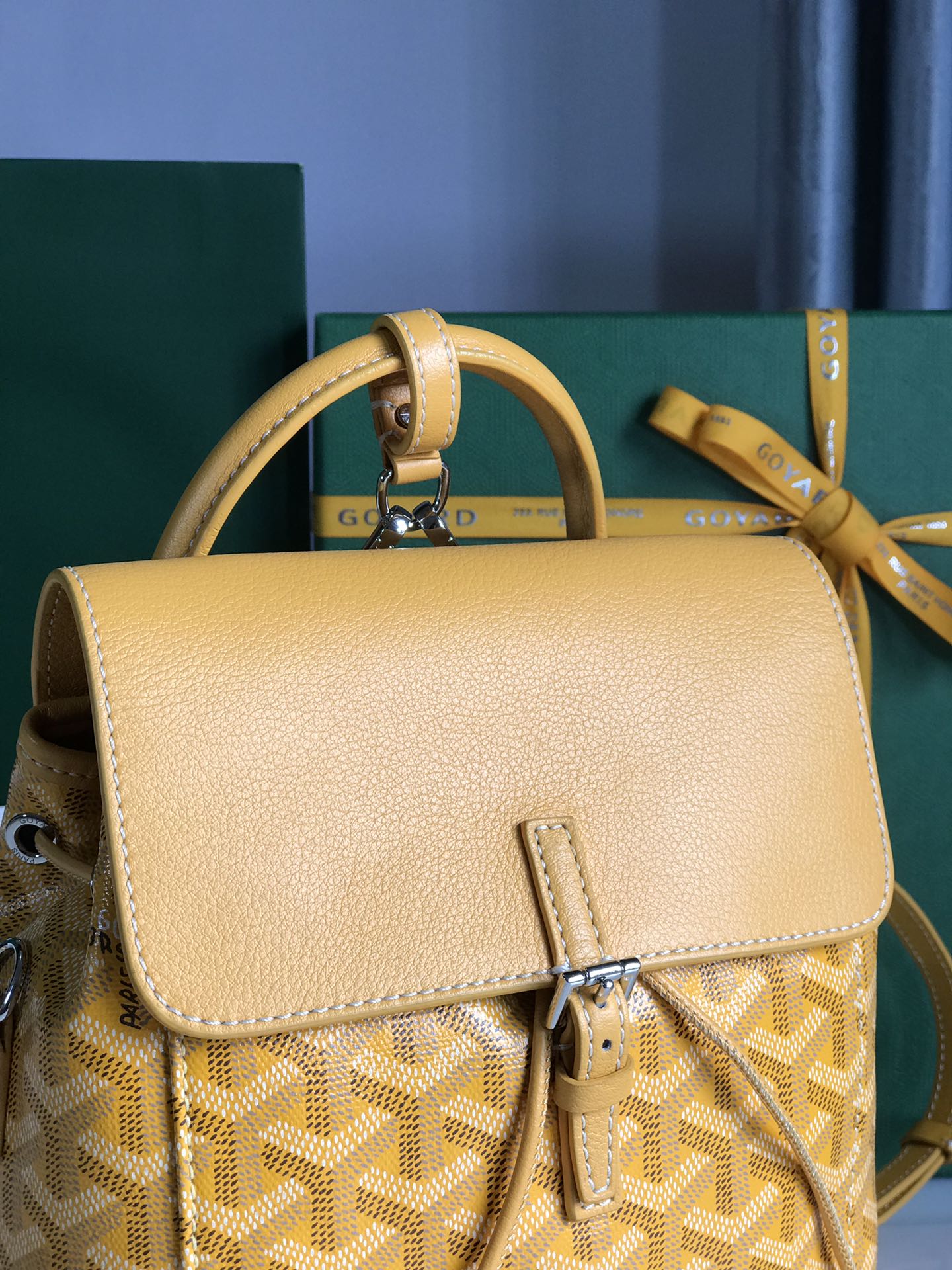ZAINO ALPIN MINI 21 IN PELLE DI AGNELLO GIALLA E TELA GOYARDINE