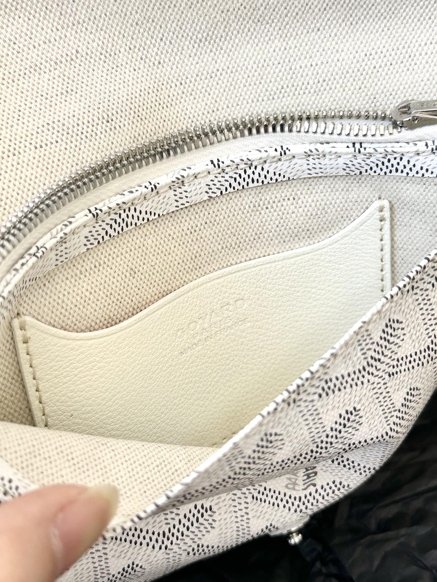 • Materiale: tela Goyardine e finiture in pelle di agnello