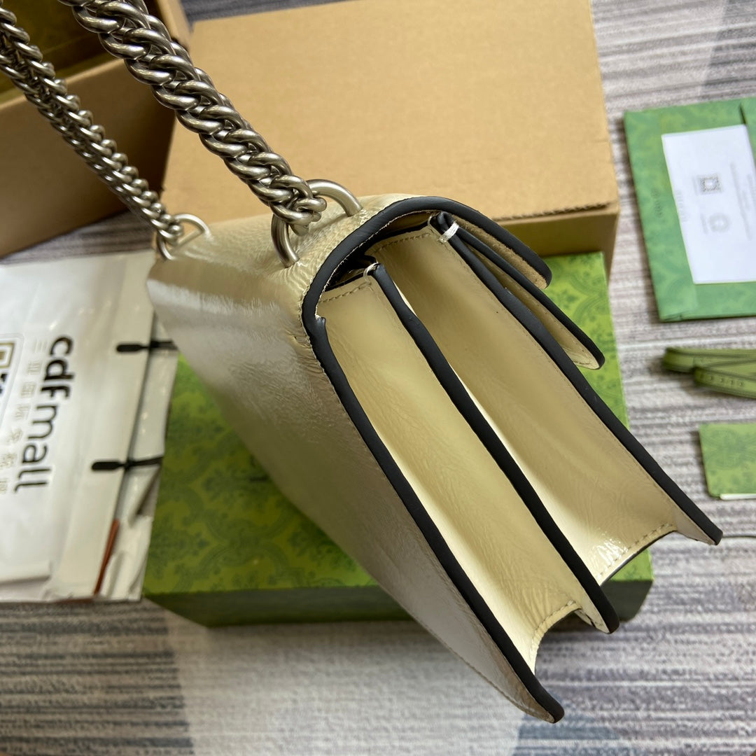BORSA A TRACOLLA PICCOLA DYONYSUS 28 IN PELLE DI VITELLO GOFFRATA LACCATA BIANCA, FERRAMENTA ARGENTO
