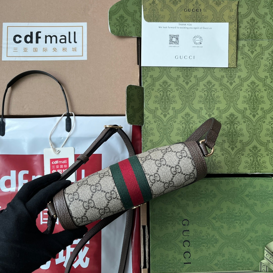 BORSA A TRACOLLA MINI OPHIDIA 20 CON WEB IN TELA BEIGE EBANO MIX PELLE DI VITELLO MARRONE