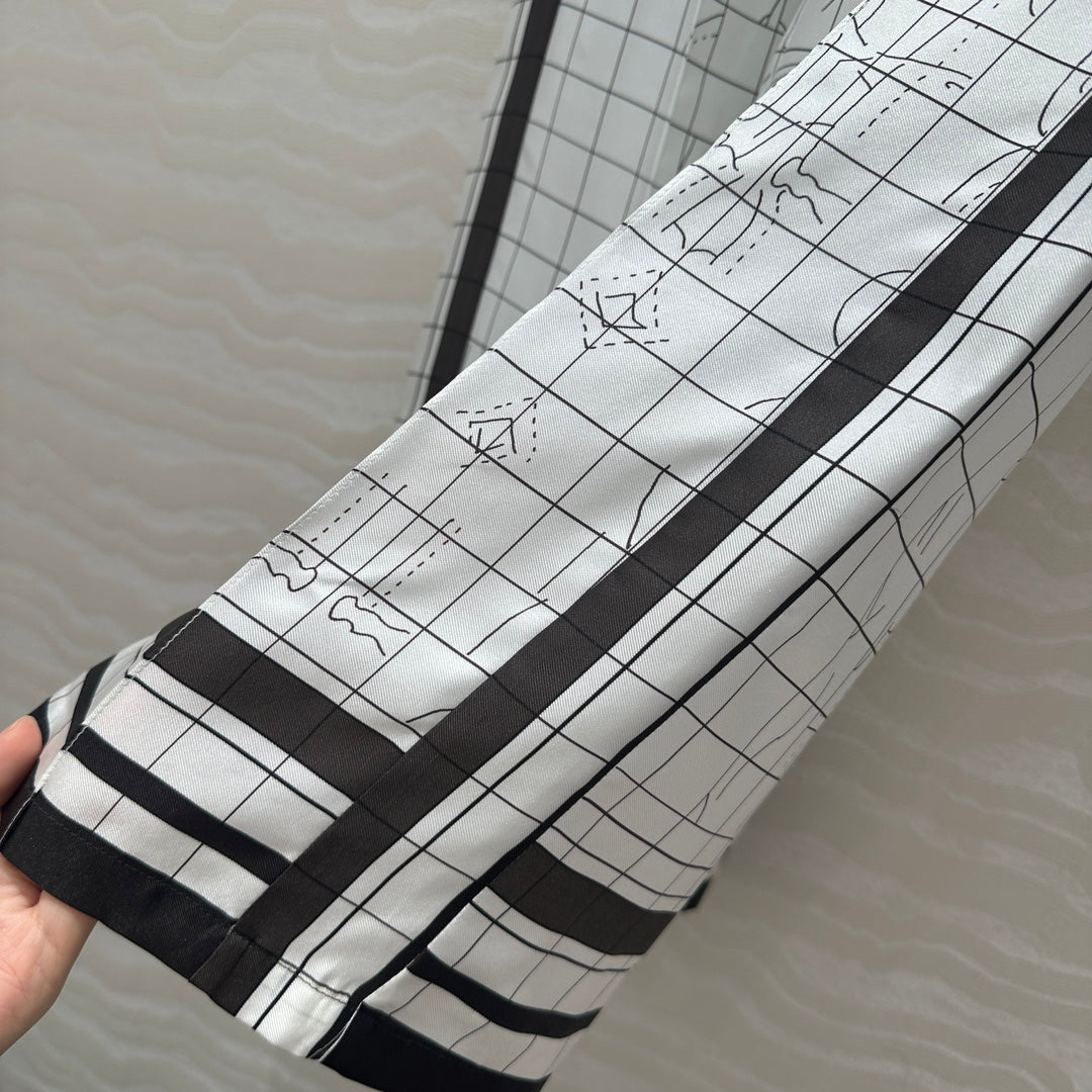 Pantaloni dritti a gamba larga Hm 25 Coaching Deja Vu in seta bianca e nera