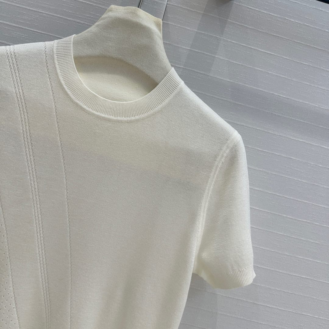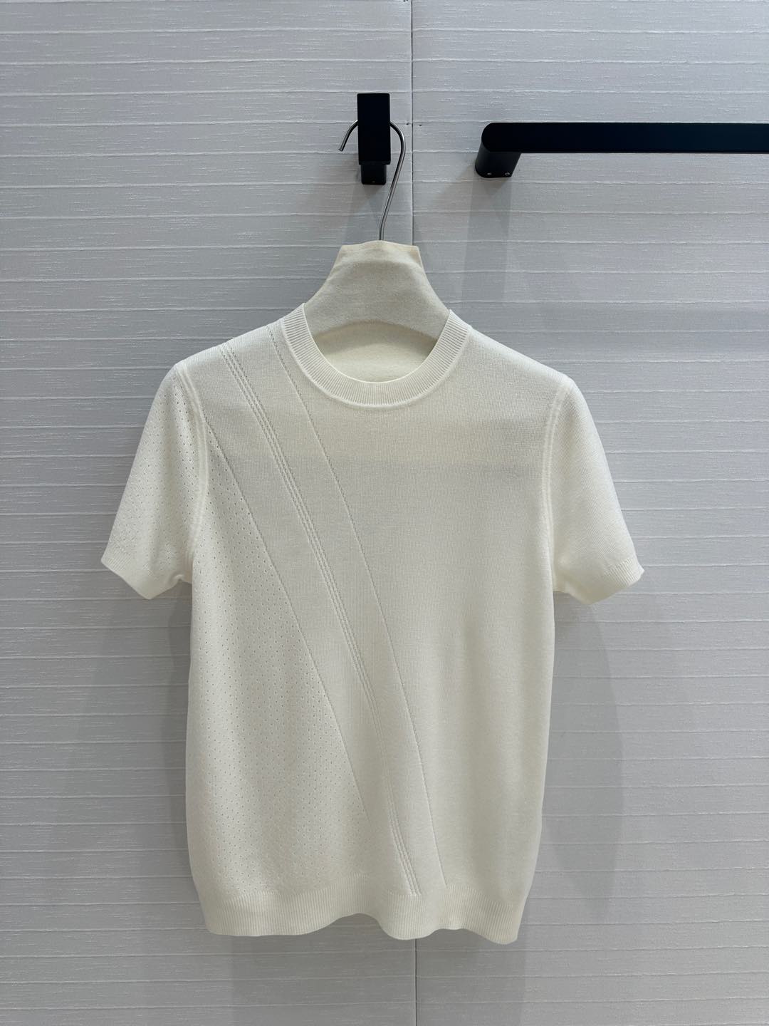Maglia a maniche corte in maglia cava Hm 25, cotone Tencel bianco