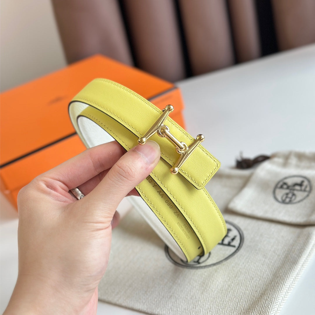 Fibbia HM Gold Mors H e cintura reversibile da 24 mm in pelle giallo beige 125368
