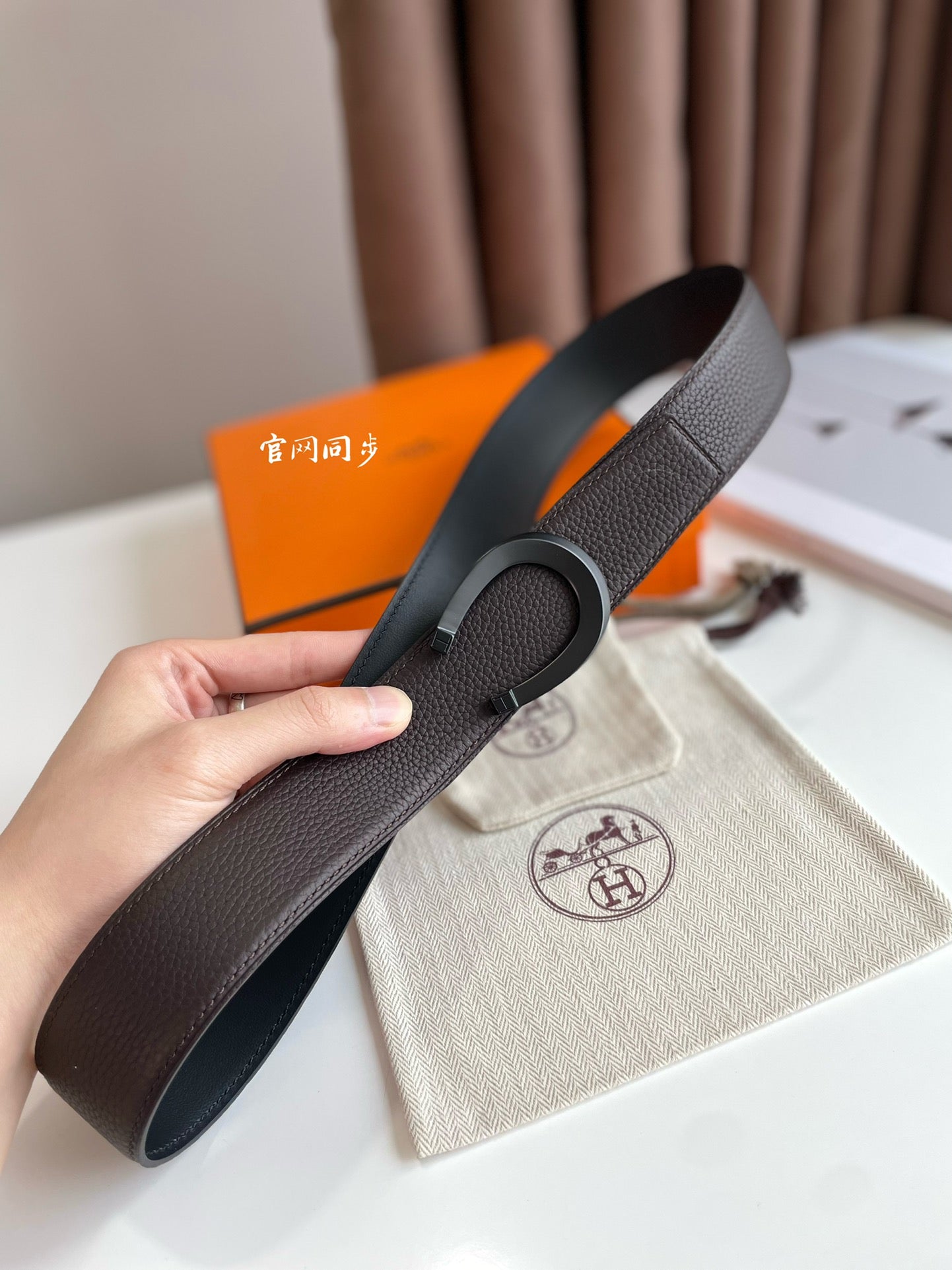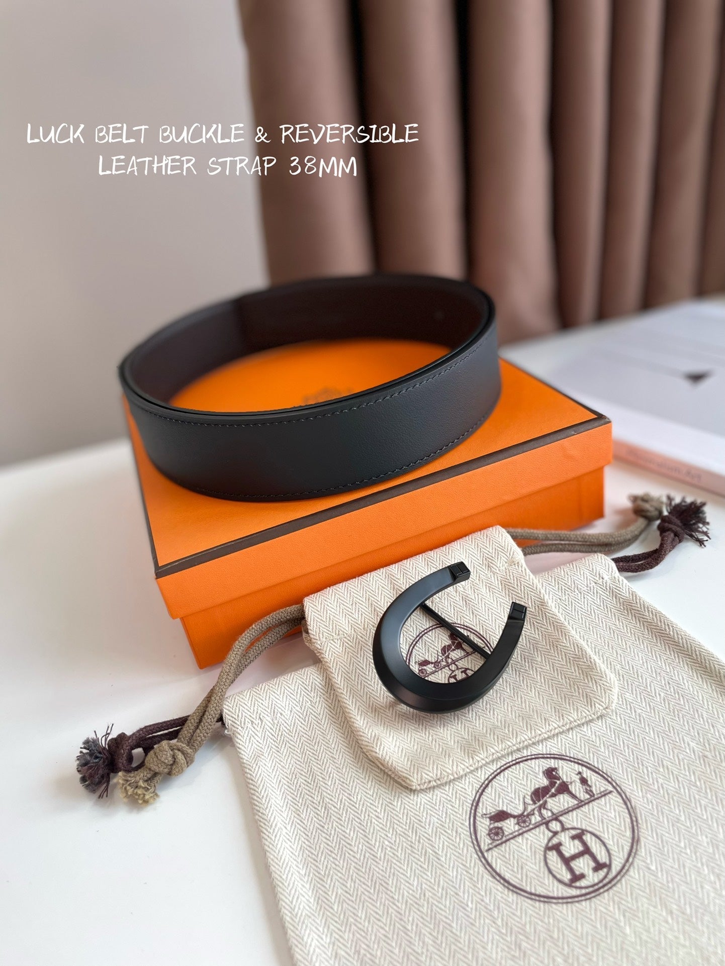 FIBBIA PER CINTURA HM LUCK E CINTURINO REVERSIBILE IN PELLE MARRONE CIOCCOLATO E NERO 38 MM