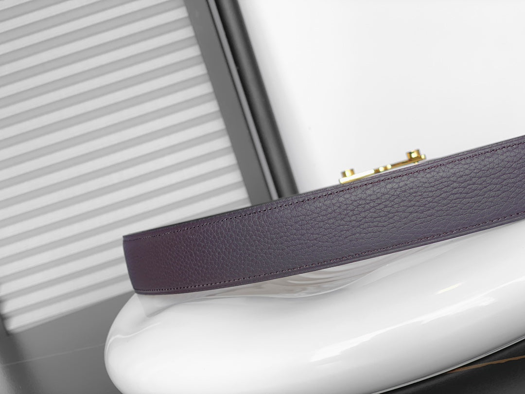 CINTURINO REVERSIBILE IN PELLE NERA E MARRONE CASTAGNO HM 32 MM FERRAMENTA ORO
