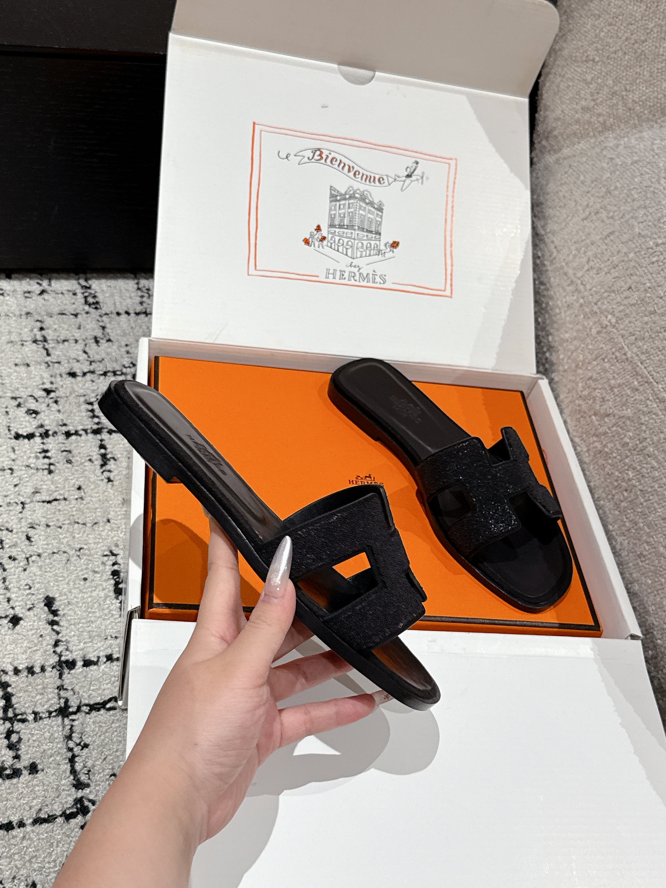 Sandalo HM 25 Oran Glitter in pelle di vitello nera