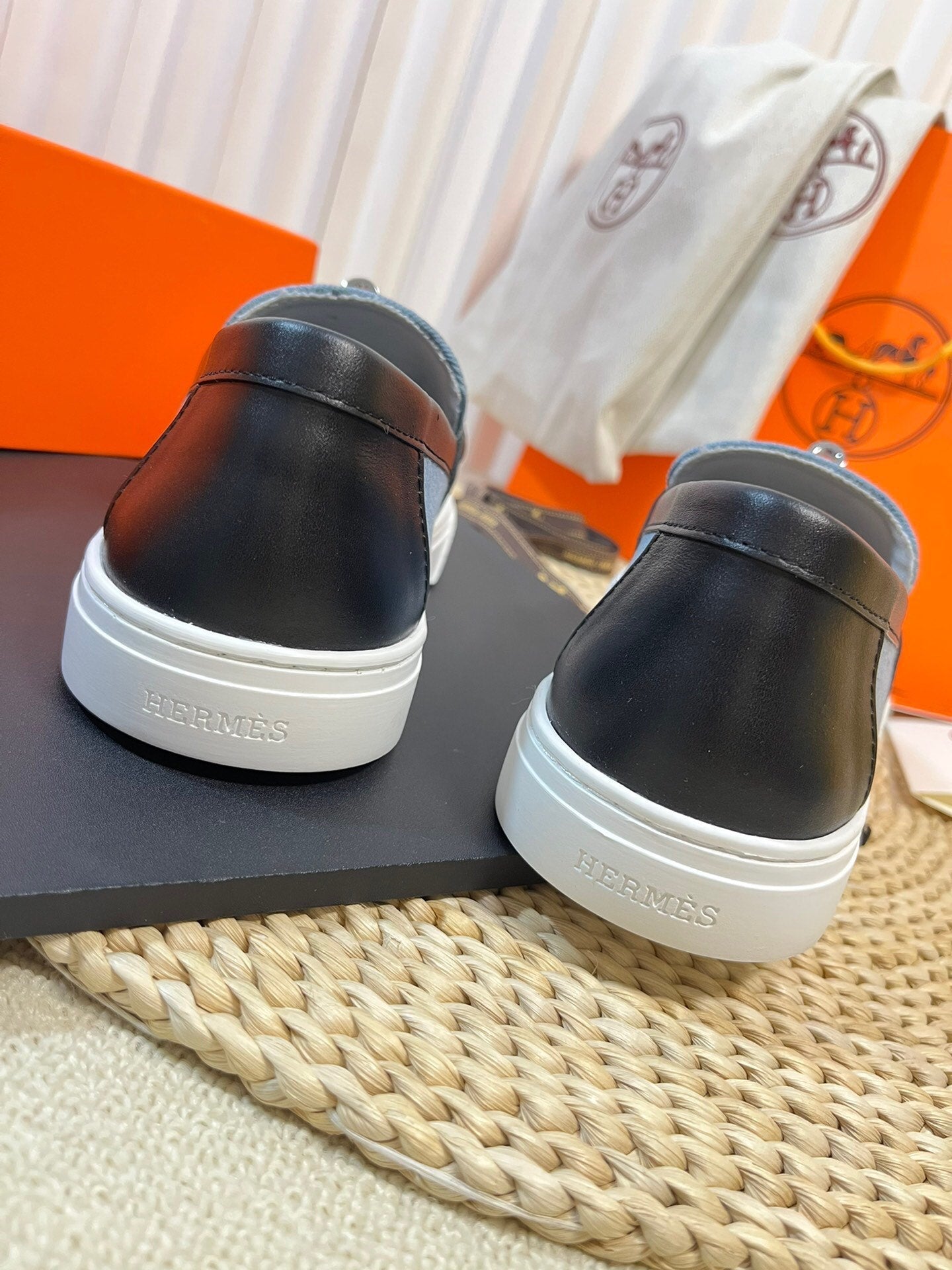 Mocassino in denim HM blu nero in pelle di vacchetta 317049