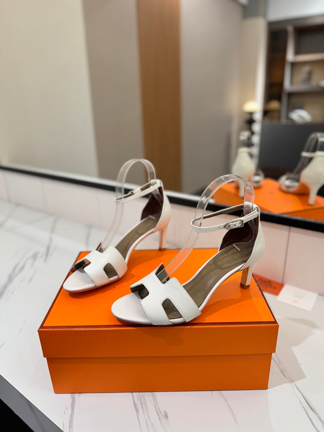 Sandali con tacco HM Joy 65mm in pelle di vacchetta bianca 294908