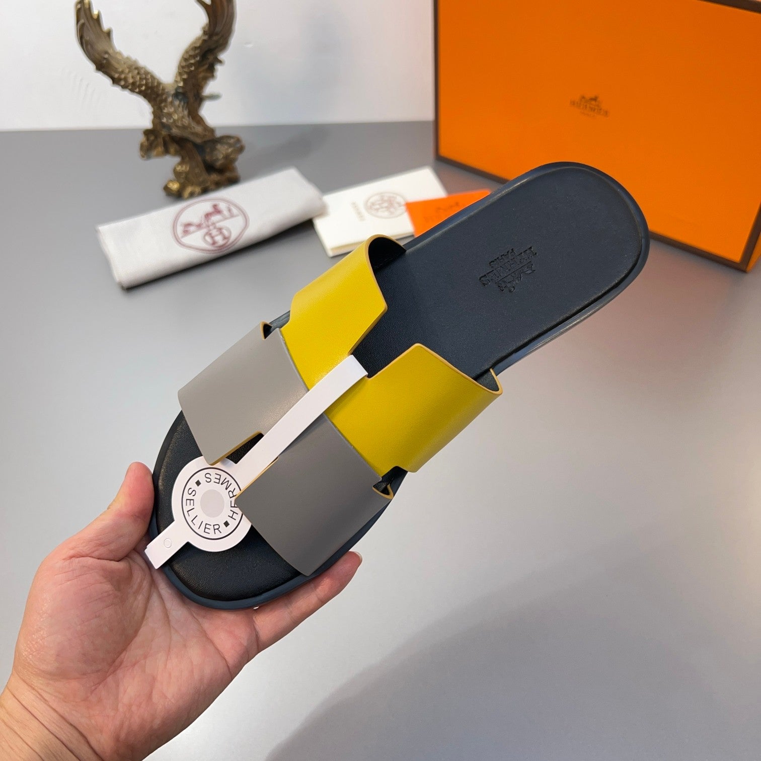 Pantofole HM Oran in pelle di vitello grigio chiaro e giallo 735646