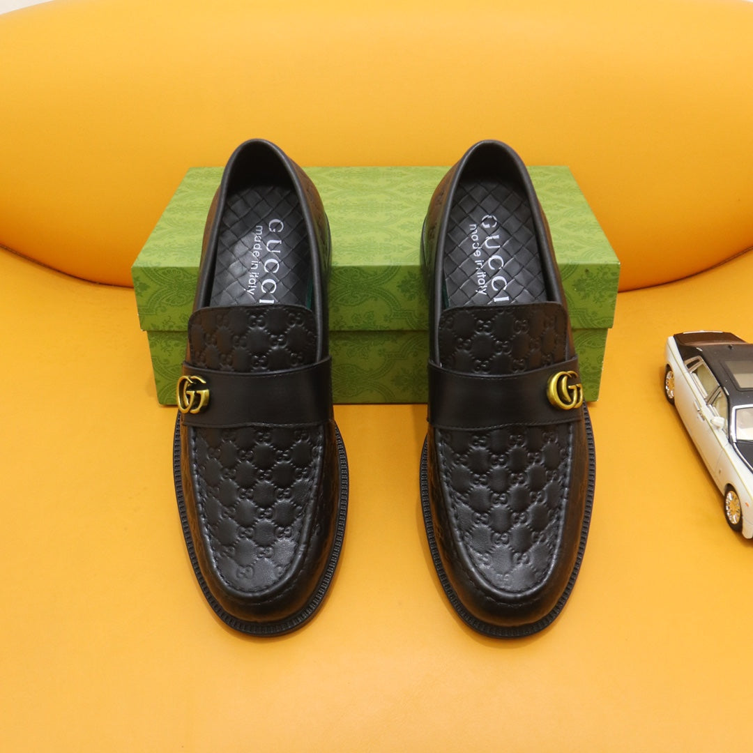 Mocassino da uomo GG in pelle di vacchetta goffrata nera 528261