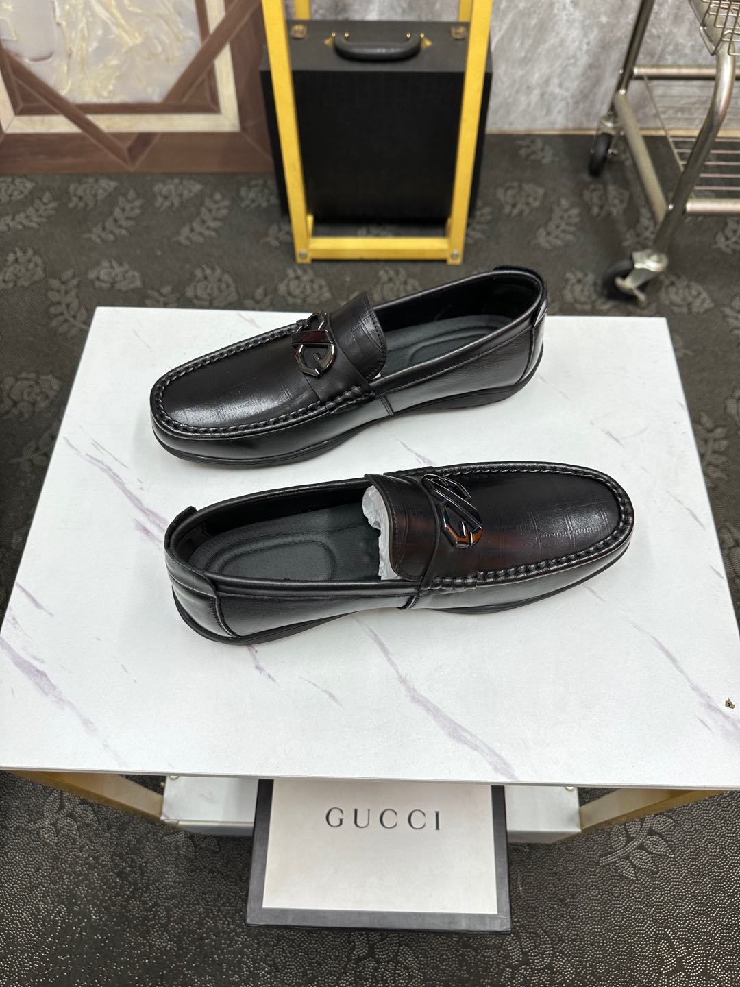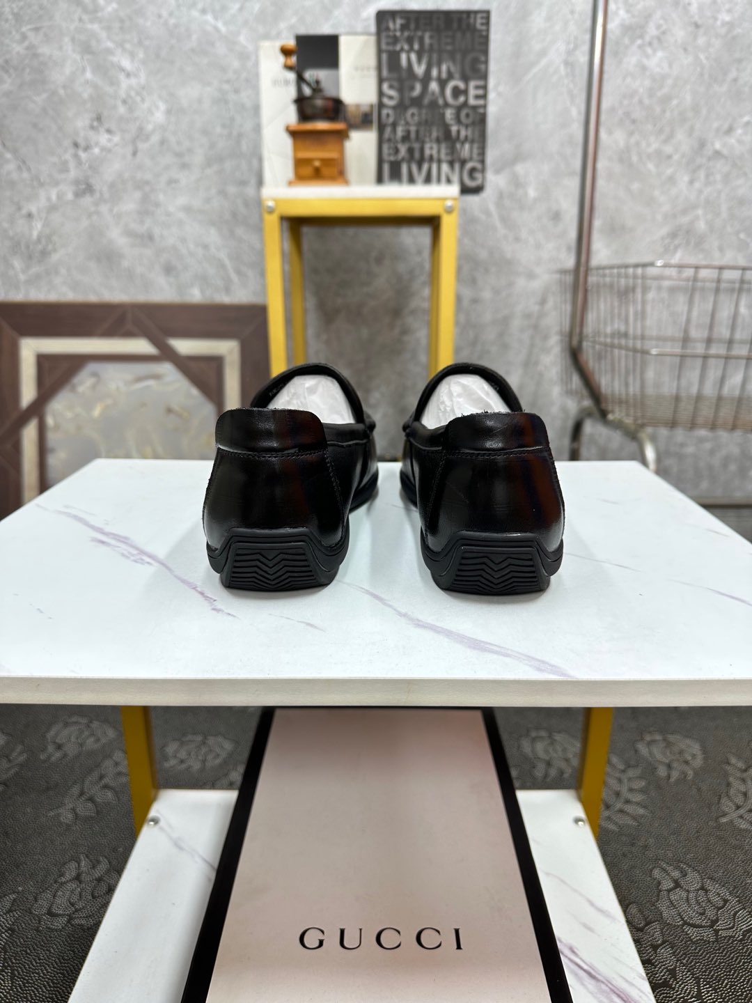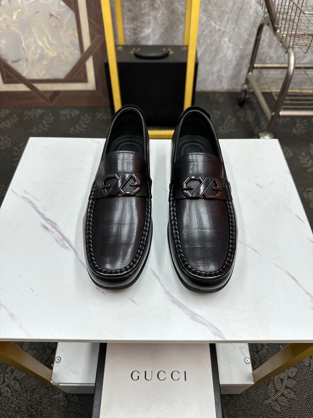 Mocassino da uomo GG in pelle di vacchetta goffrata nera 532512