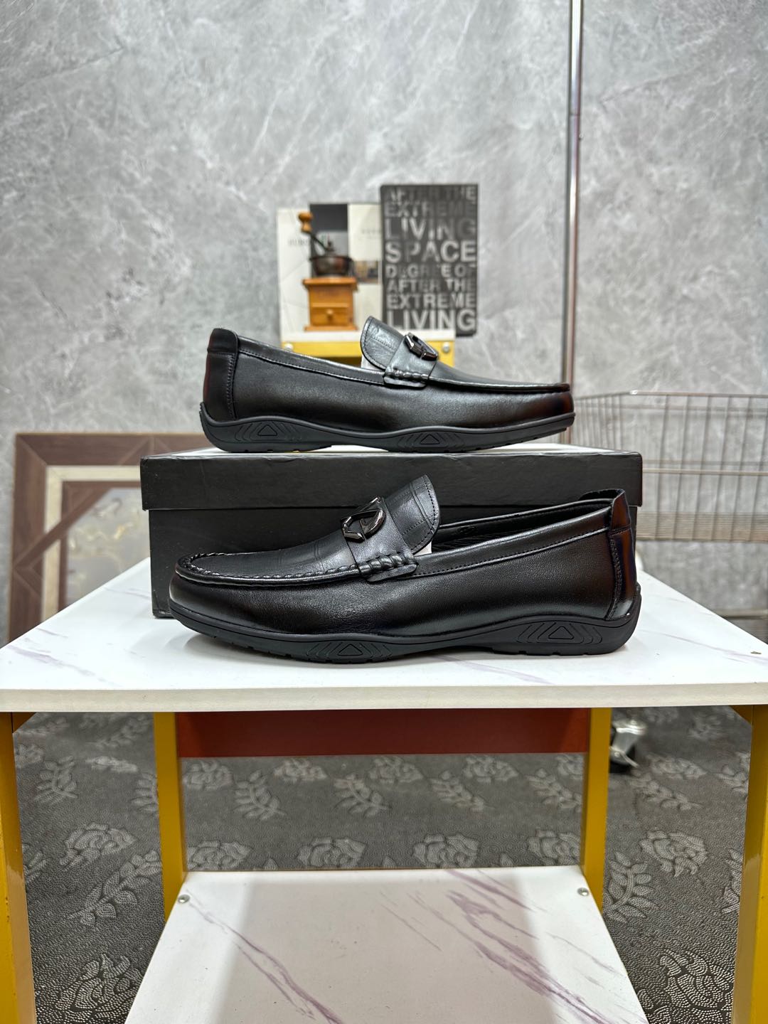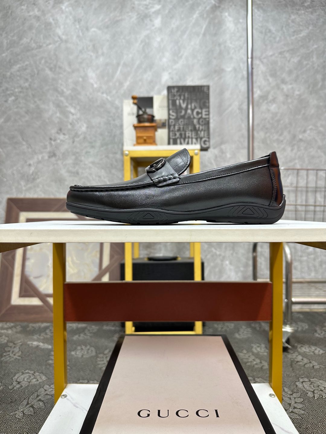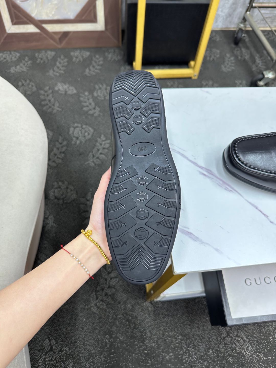 Mocassino da uomo GG in pelle di vacchetta goffrata nera 532512