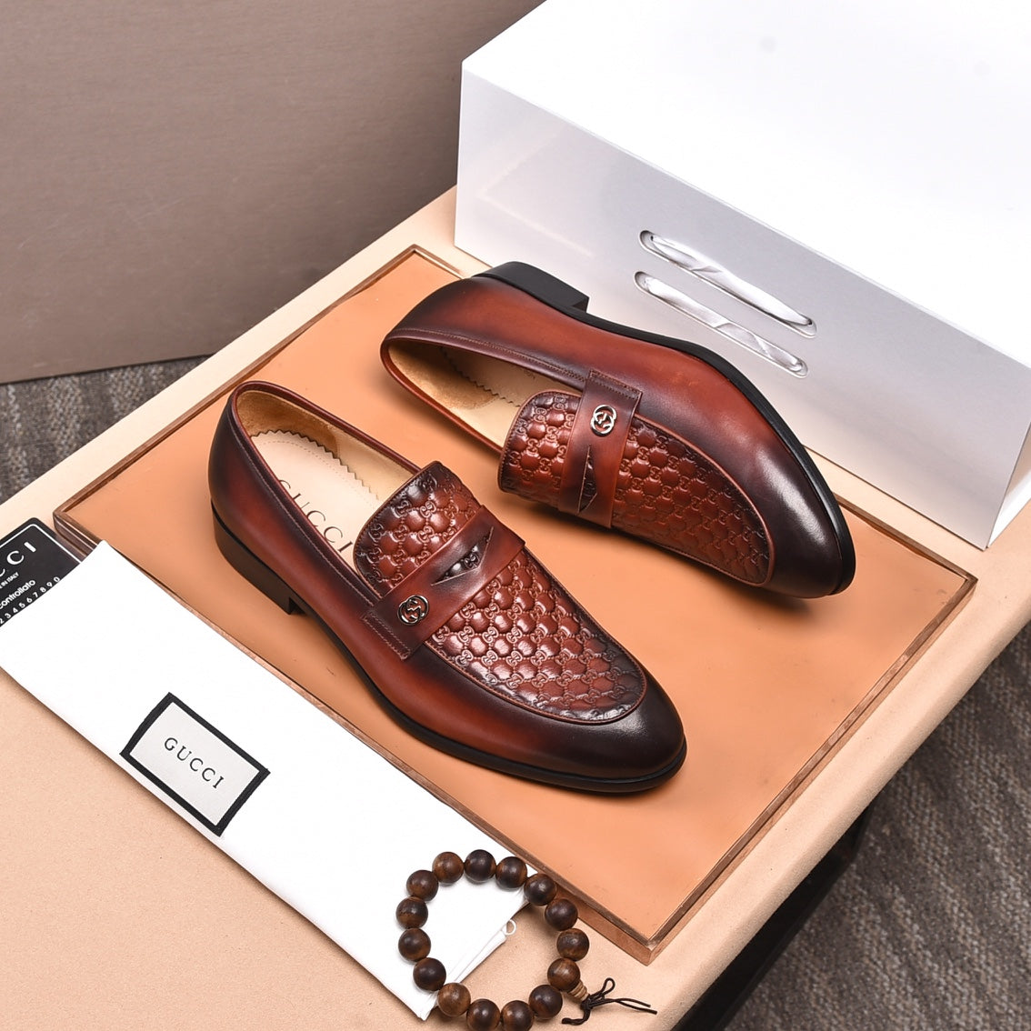 Mocassino da uomo GG in pelle di vacchetta goffrata marrone 538717