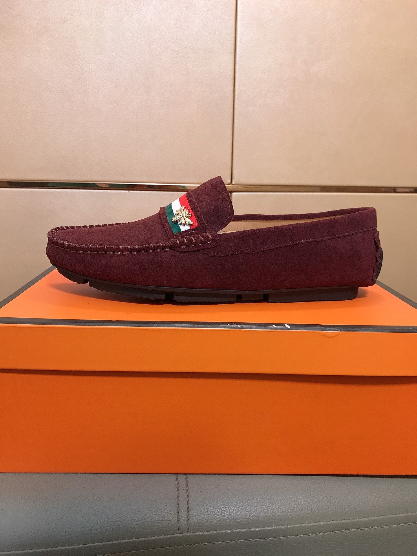 Mocassino da uomo GG in pelle scamosciata rosso vino 526675