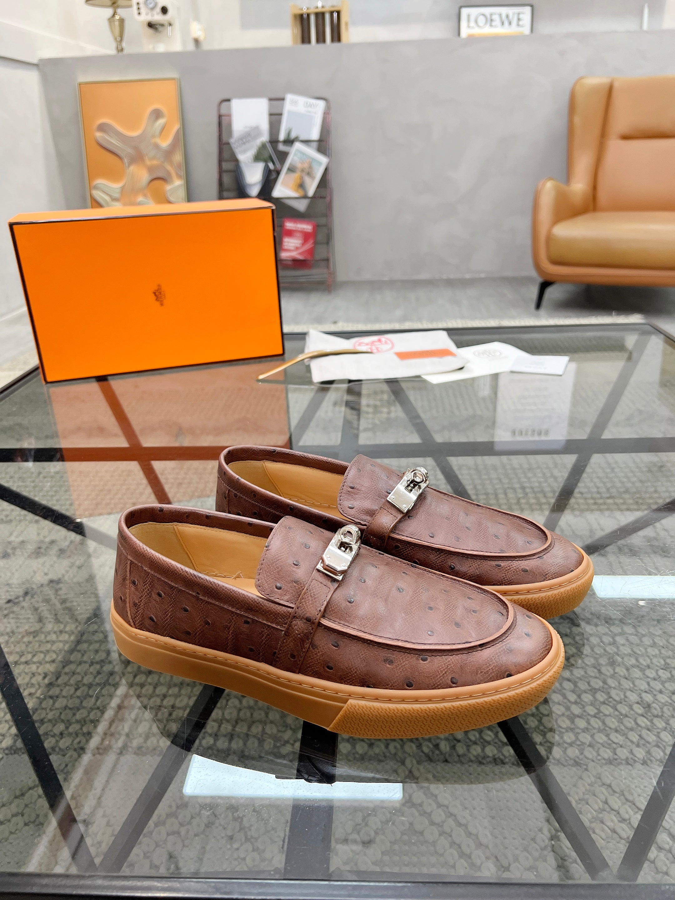 Mocassini con morsetto da uomo HM in pelle di vitello marrone 621423