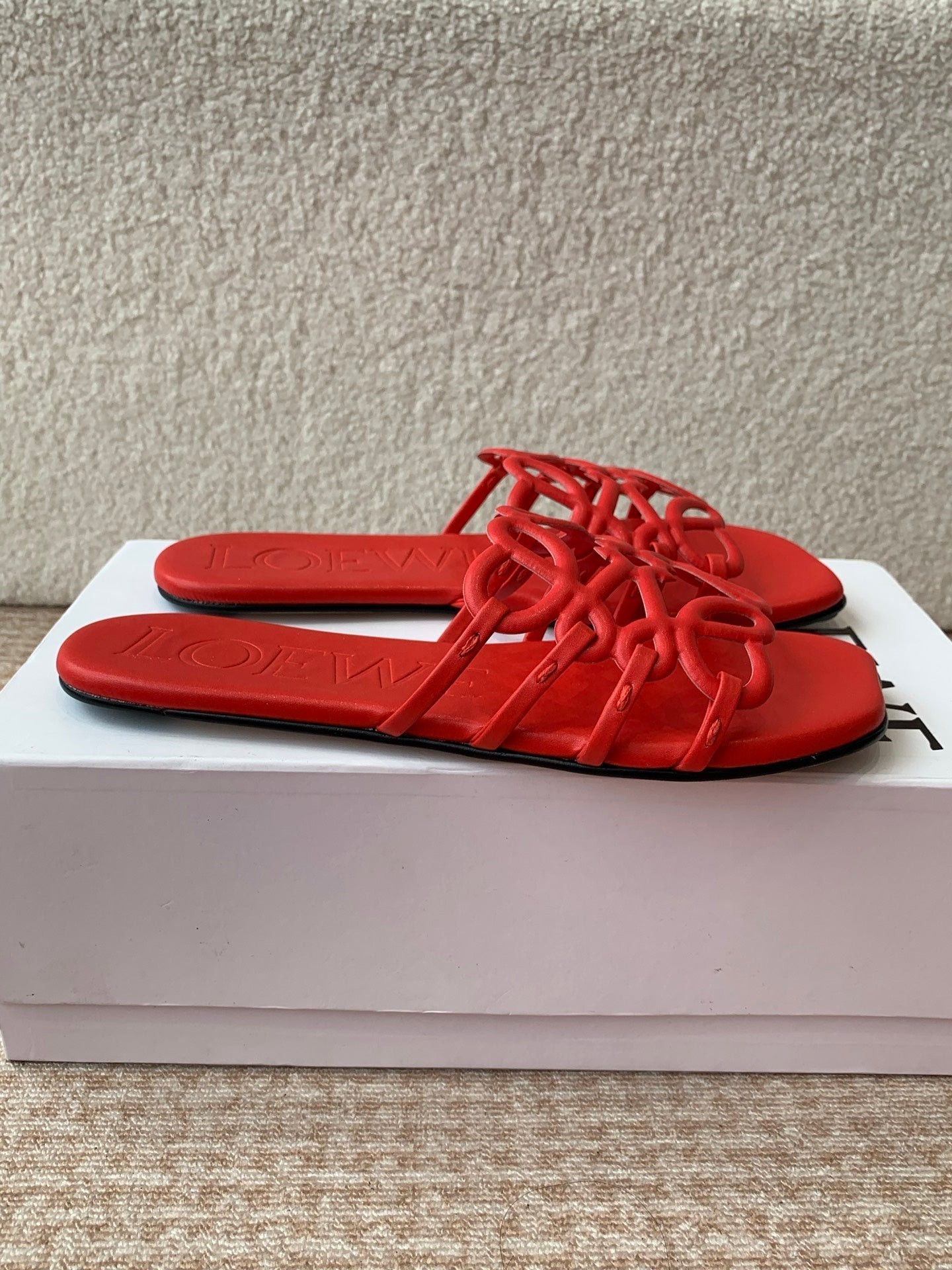 Loewe 25 Petal Anagram Slides Pelle di vacchetta rossa