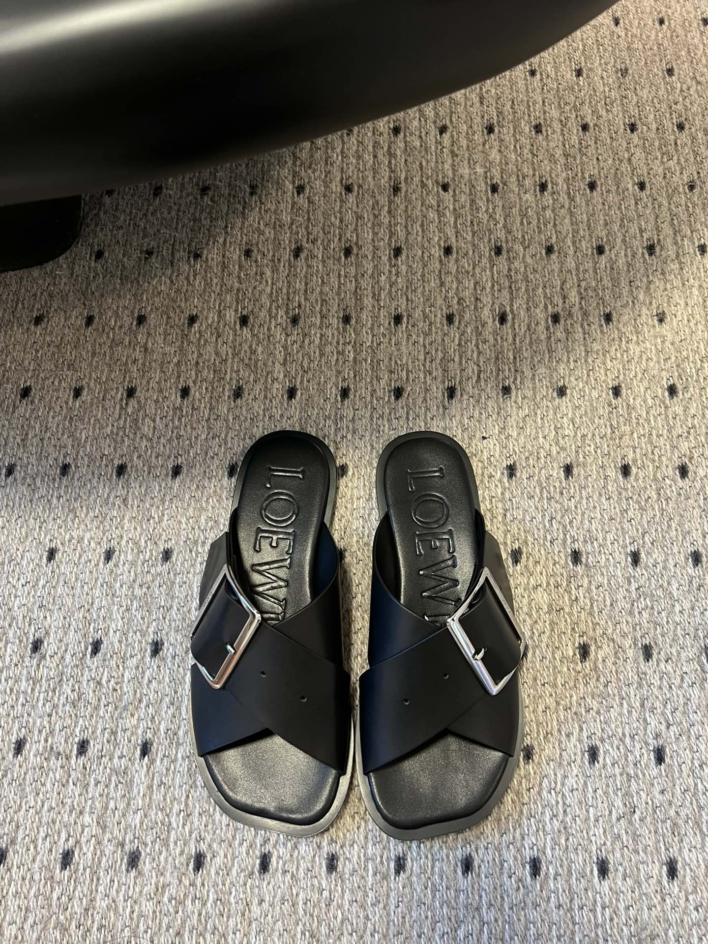 Sandali piatti Loewe 25 Petal Belt in pelle di pecora nera