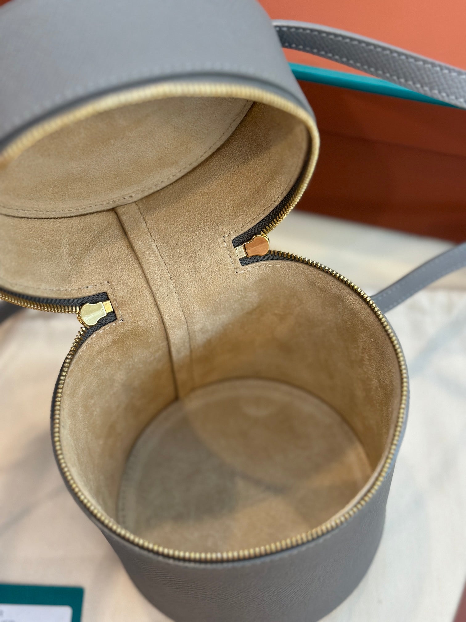 BORSA EXTRA CASE MEDIA 16 IN PELLE DI VITELLO LISCIA GRIGIO TORTORA CON FERRAMENTA ORO